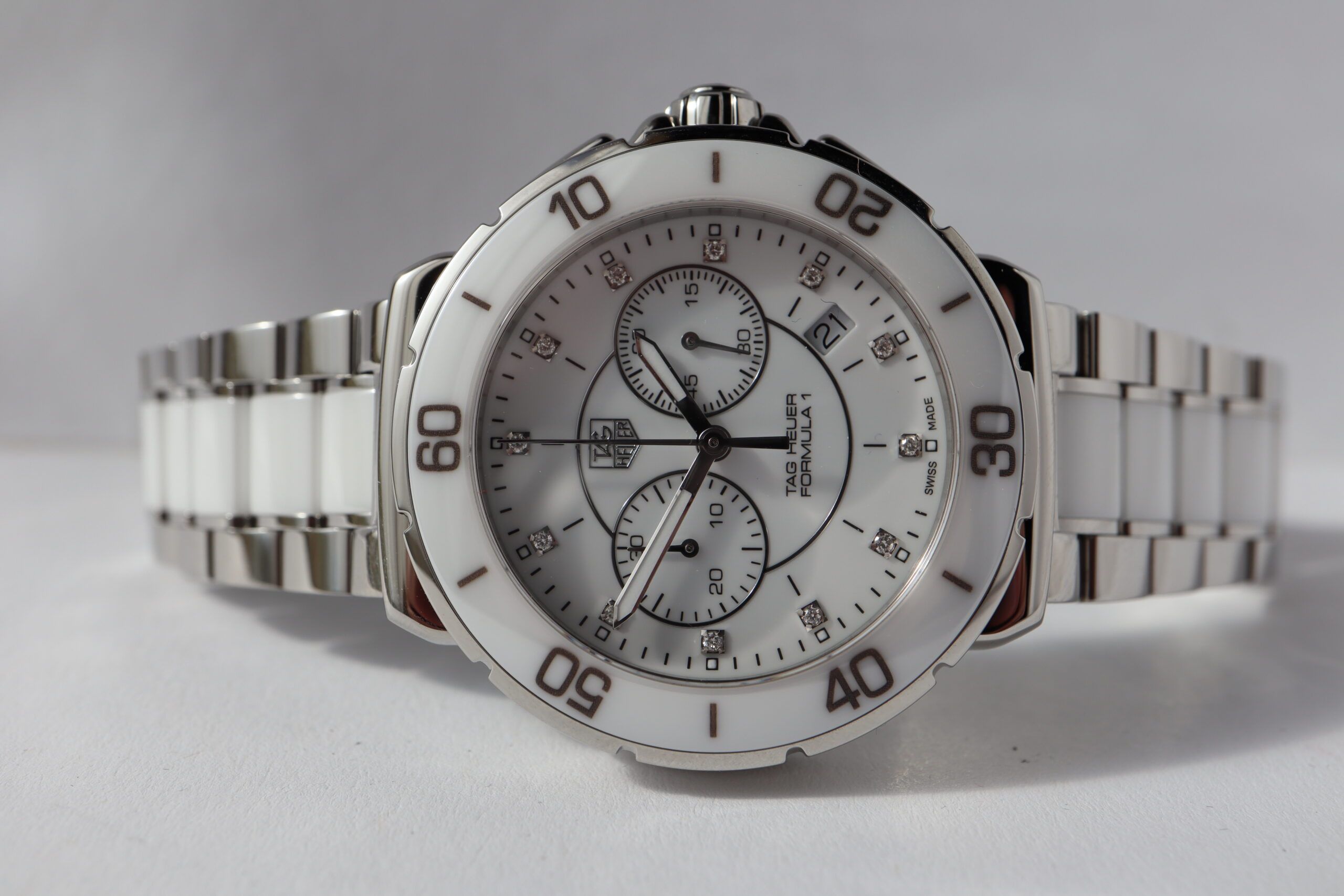 Swiss-made, this elegant TAG Heuer Formula 1 is an aesthetic 41 mm watch. This model features a Steel and Ceramic case and a Quartz movement.