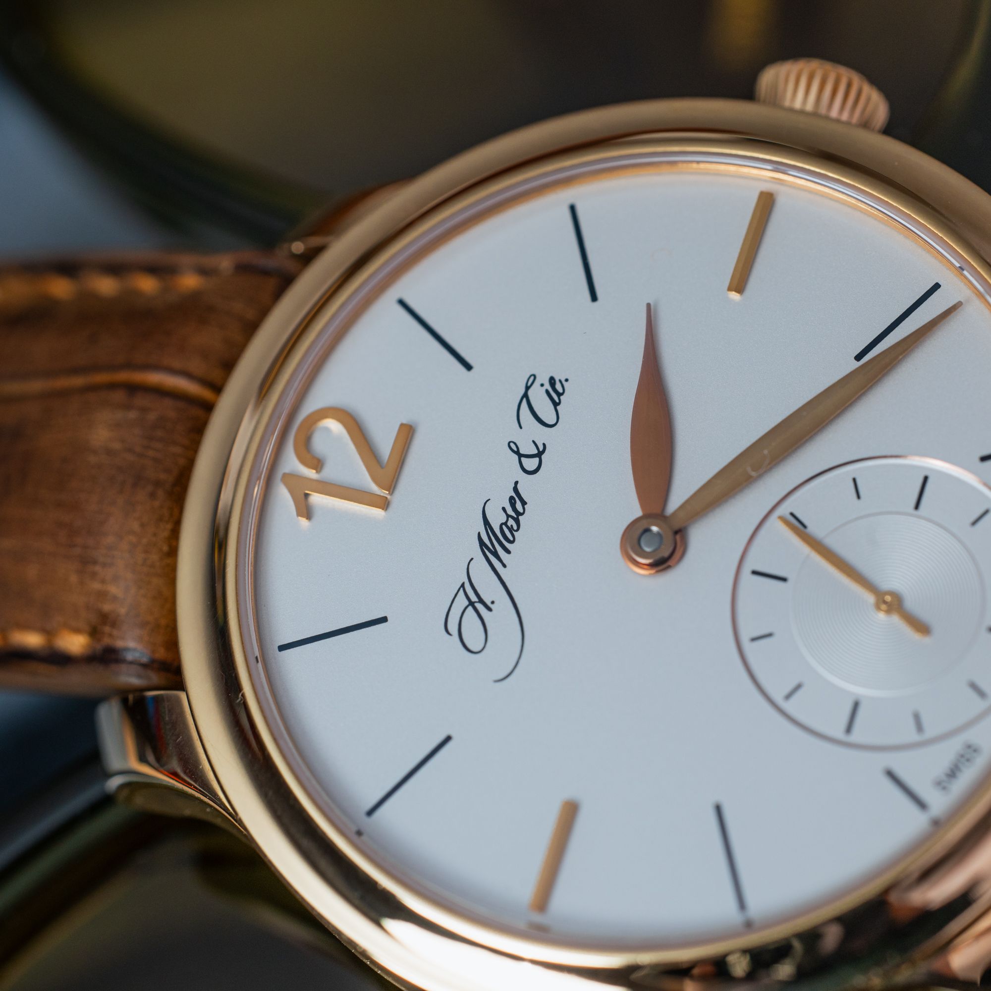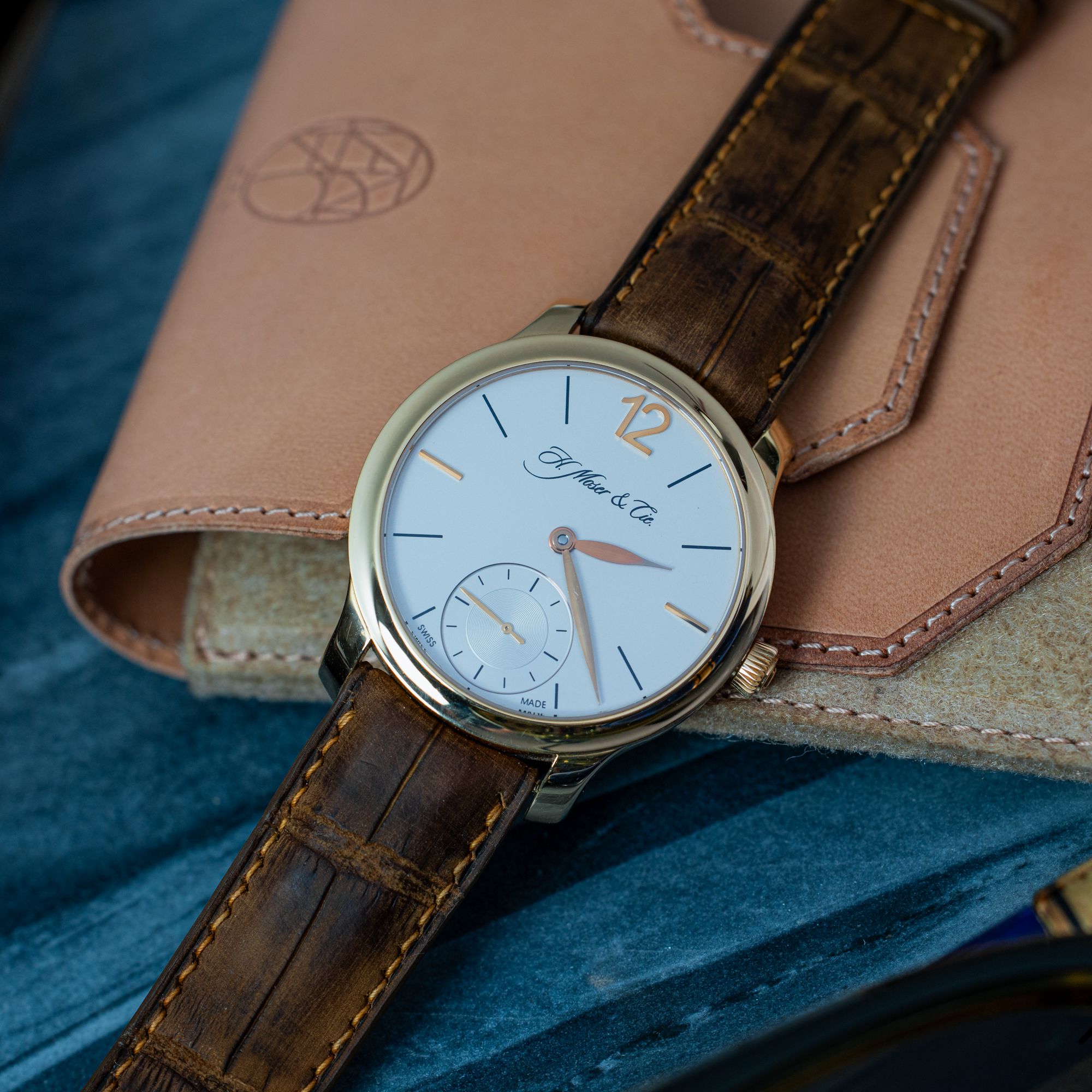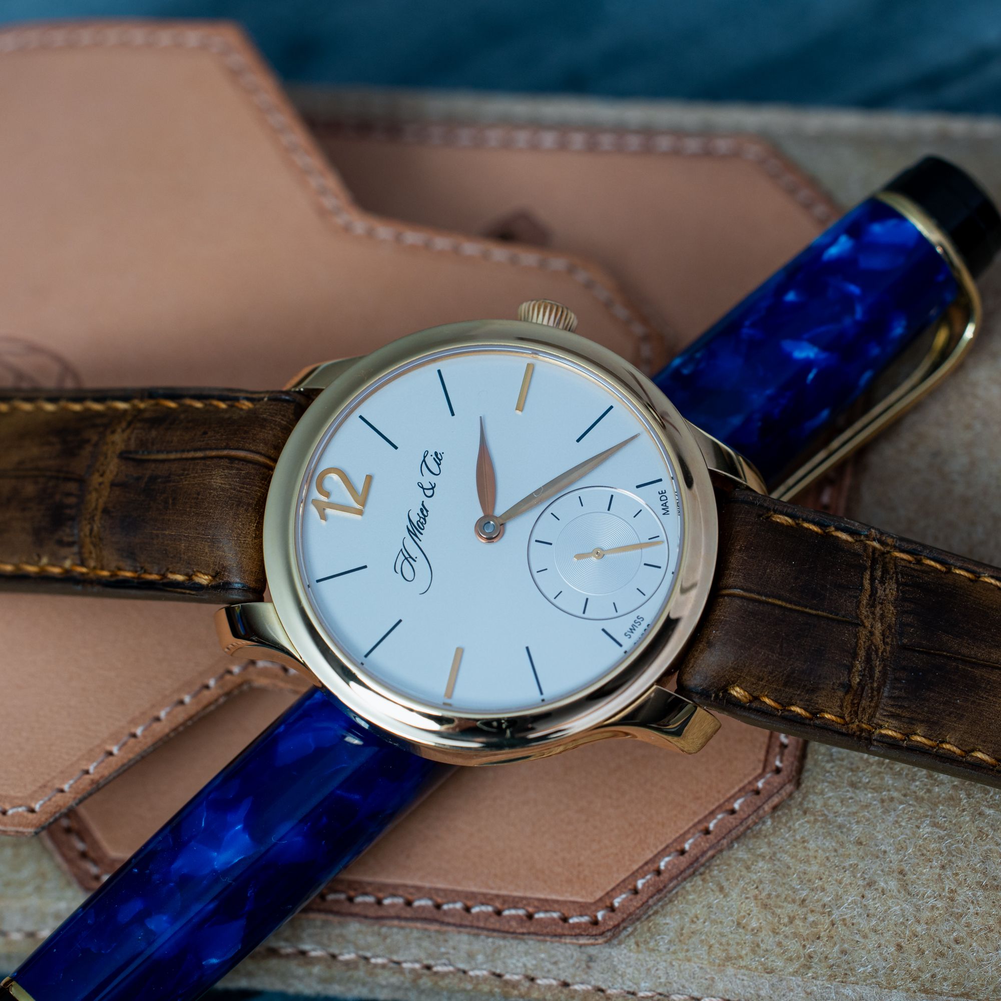 Another exceptional piece — a true essence of style, classic watchmaking and refined minimalism. Here we have the H. Moser & Cie. Endeavour Mayu in a gold case, paired with a beautiful cream-white dial.