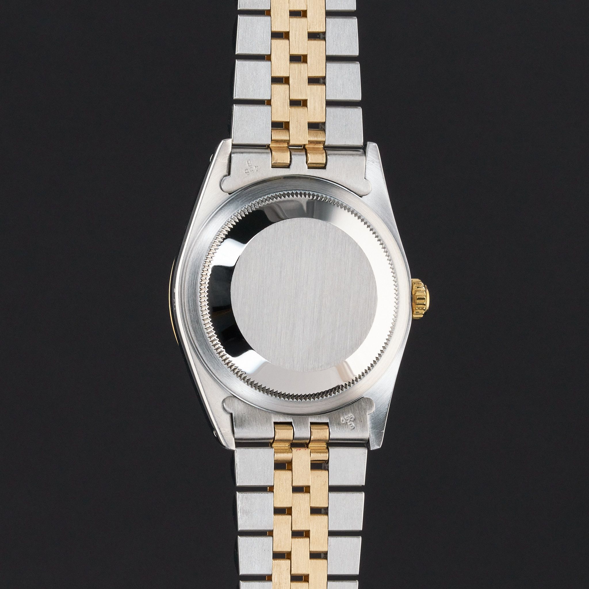This Rolex Datejust 16233 features a Silver jubilee small diamond dial and is crafted from 18K yellow gold and stainless steel, with a production year of 1993.