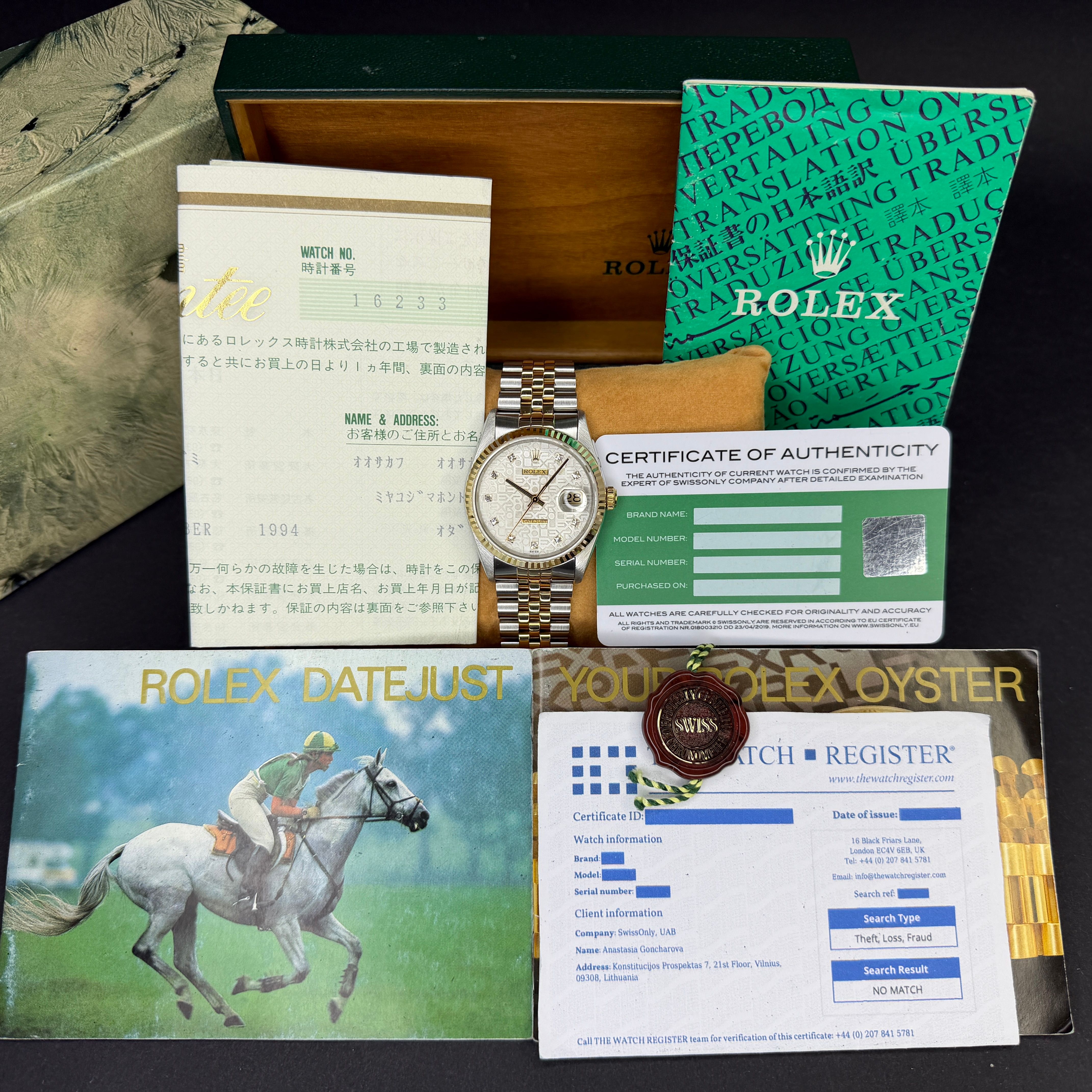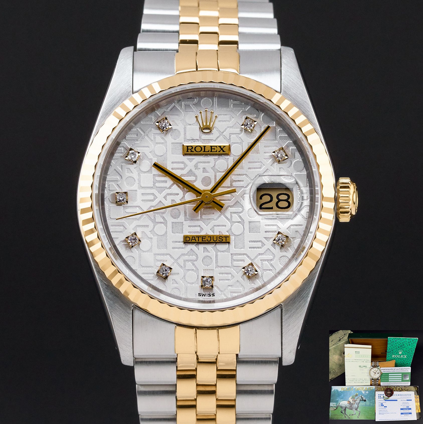 Rolex Datejust 36 Rolex Datejust, 16233, 36mm, 1993, Two-Tone, Silver Jubilee Small Diamond dial, Fullset, 1y warranty