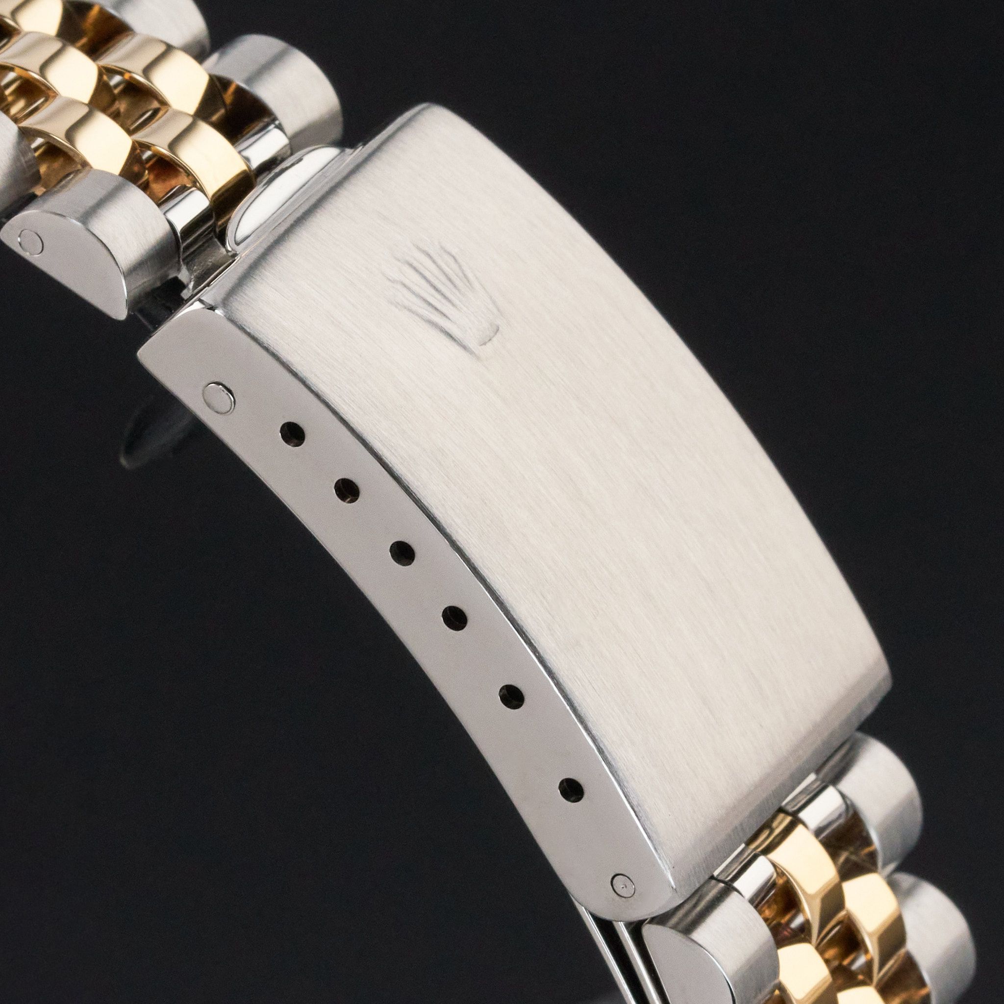 This Rolex Datejust 16233 features a White Roman small diamond dial and is crafted from 18K yellow gold and stainless steel, with a production year of 1992.