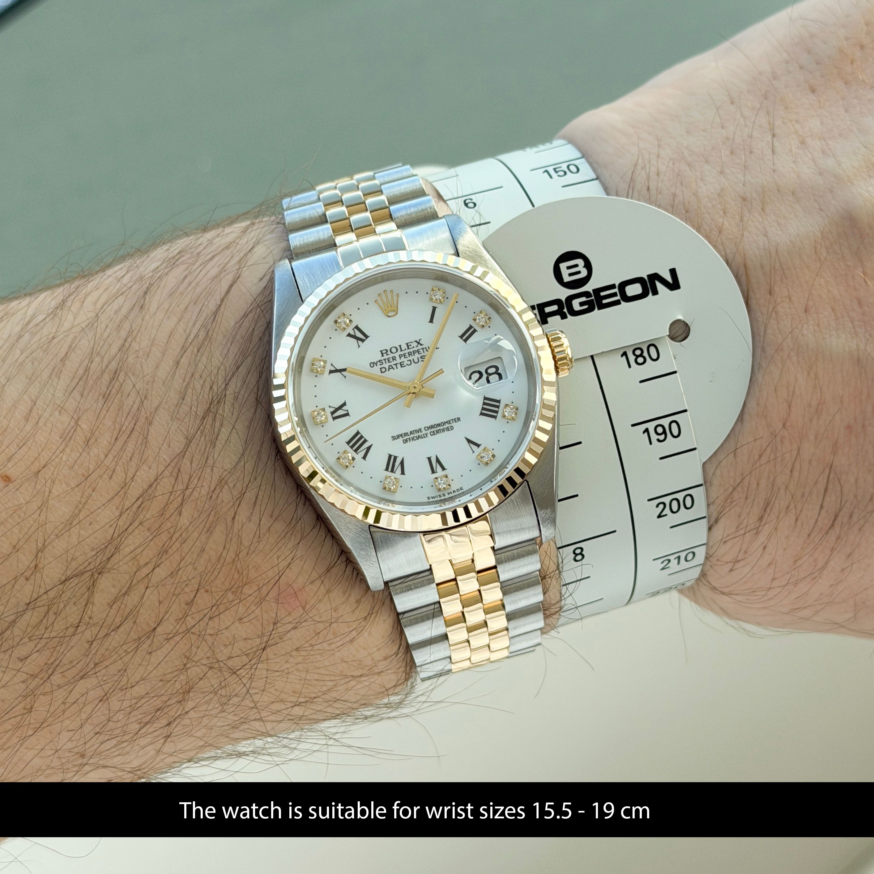 Rolex Datejust, 16233, 36mm, 1992, Two-Tone, White Roman Small Diamond dial, Fullset, 1y warranty