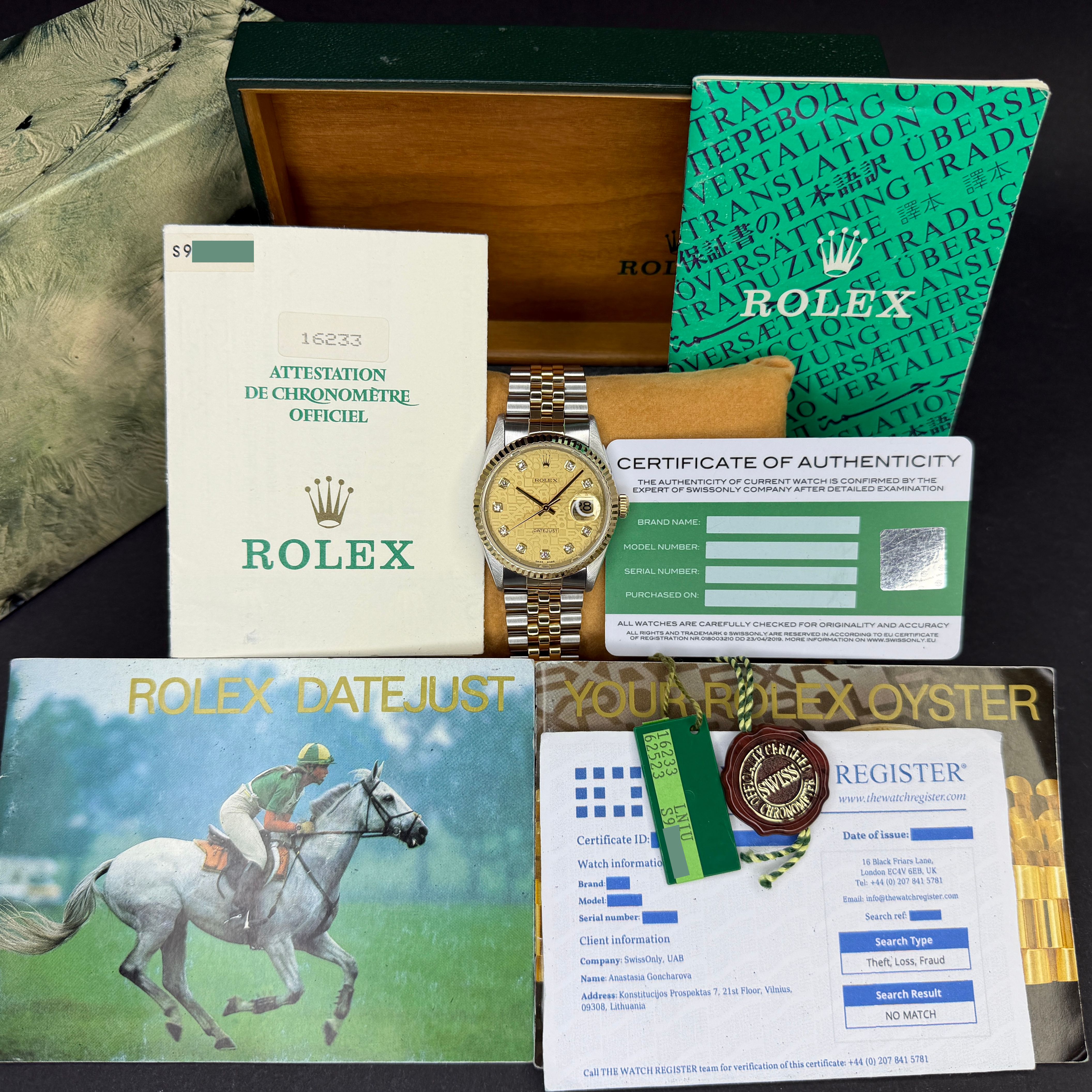Rolex Datejust 36 Rolex Datejust, 16233, 36mm, 1994, Two-Tone, Champagne Jubilee Big Diamond dial, Fullset, 1y warranty