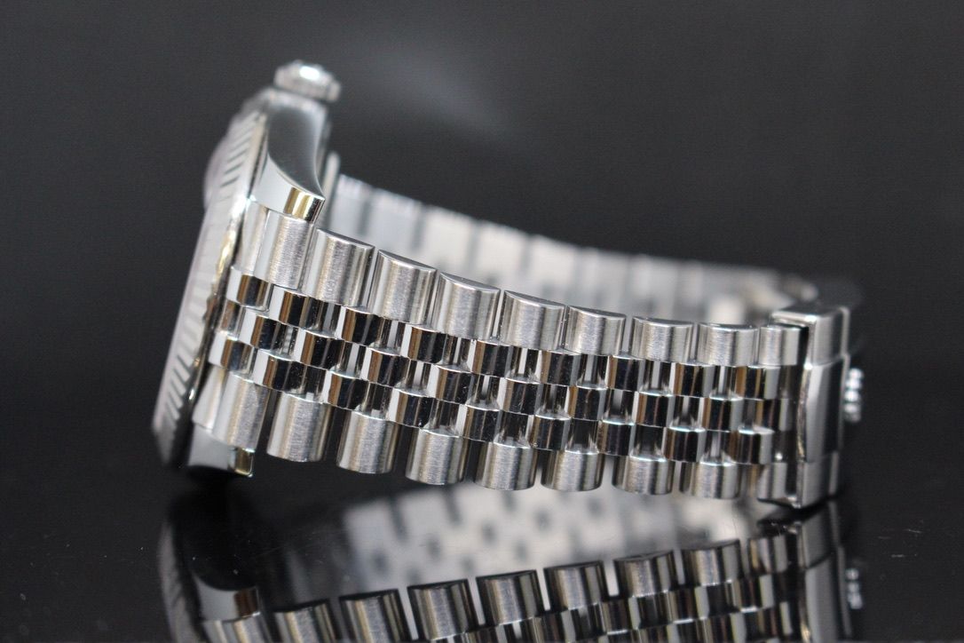 - Minor signs of wear such as hairline marks or small surface scratches. Case, bezel, and bracelet retain sharp edges and overall form. May have been professionally polished without affecting the original contours. Fully functional mechanically.