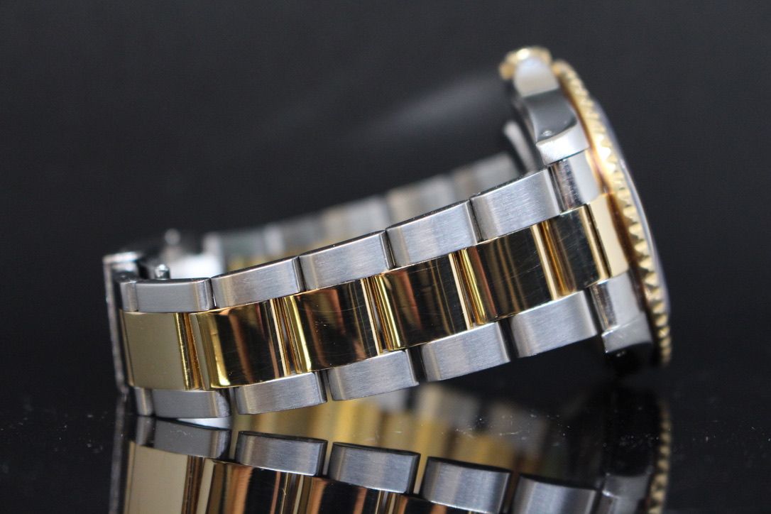 - Minor signs of wear such as hairline marks or small surface scratches. Case, bezel, and bracelet retain sharp edges and overall form. May have been professionally polished without affecting the original contours. Fully functional mechanically.