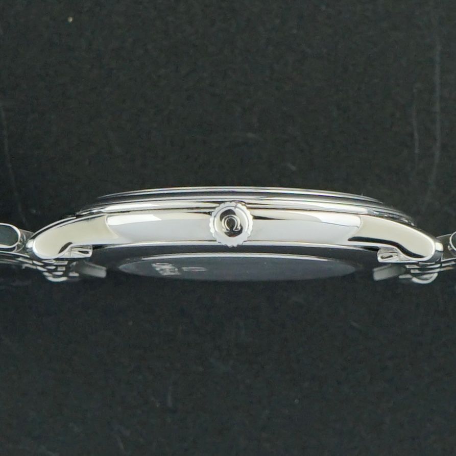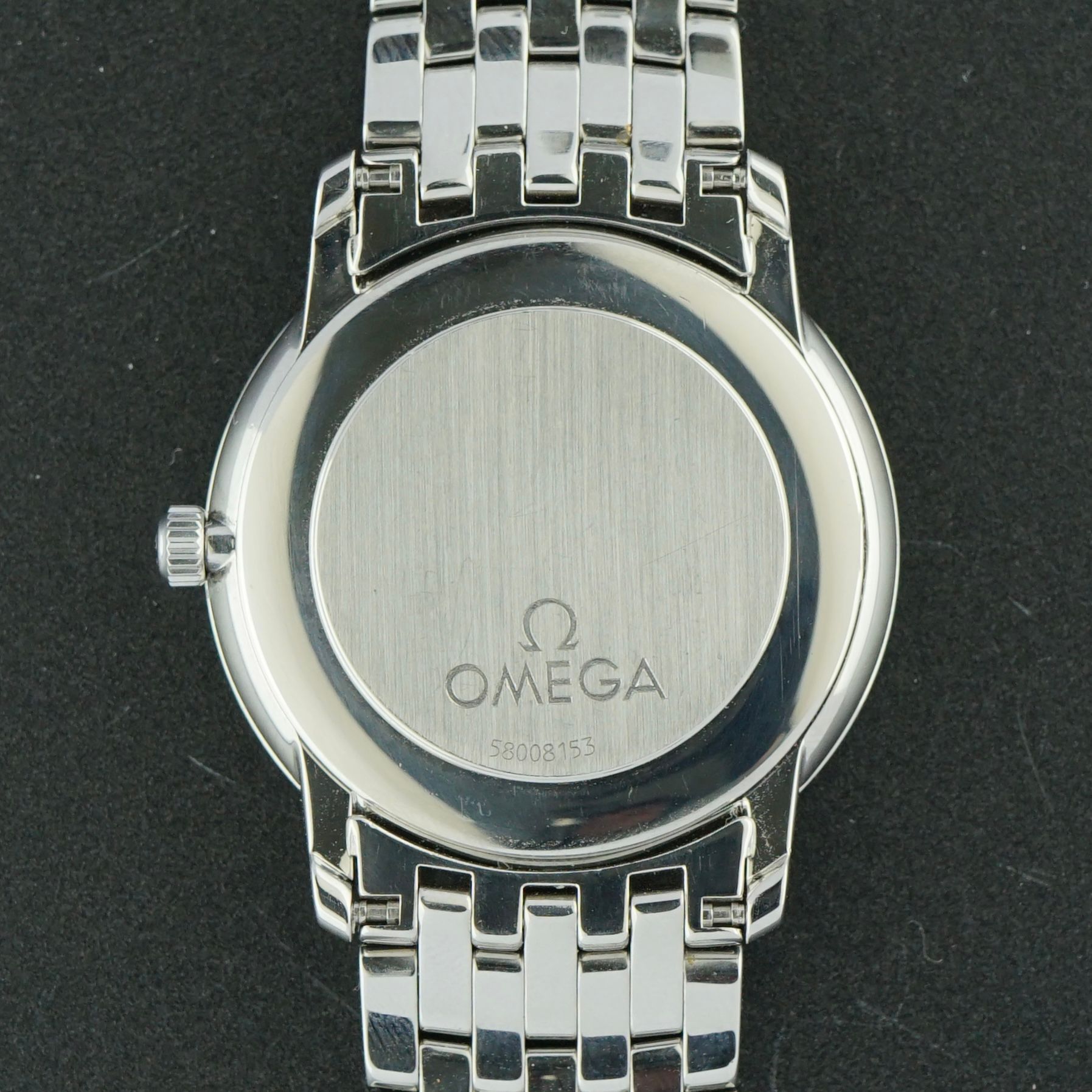 A Vintage Omega De Ville Prestige produced in 1998, in almost perfect condition. Features a clean black textured dial in excellent shape. The stainless steel case measures 34.5mm.