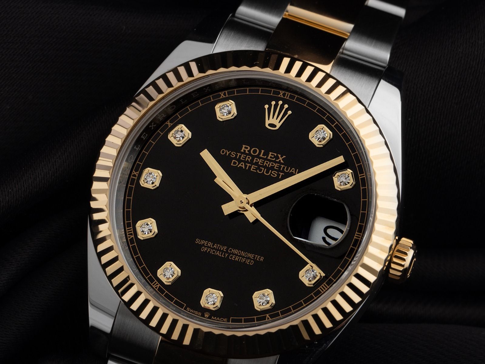 Gehäuse Edelstahl poliert und satiniert, Gehäusedurchmesser ohne Krone 41mm, Gehäusehöhe 11,6mm. Lünette 18kt Gelbgold geriffelt und poliert. Armband Oyster Edelstahl / 18kt Gelbgold poliert und satiniert, Rolex Faltschließe Edelstahl / 18kt Gelbgold mit Hersteller-Logo. Zifferblatt schwarz mit aufgesetzten gelbgoldenen Indexen und gelbgoldenen Zeigern. Uhrwerk Automatik, Chronometer mit Zeugnis, Rolex Manufakturkaliber 3235 mit 31 Edelsteinen. Anzeige von Stunde, Minute und Sekunde über Zeiger aus der Mitte mit Sekundenstopp zur sekundengenauen Einstellung der Uhrzeit, Datumsanzeige mit Schnellverstellung unter Glaslupe bei 3 Uhr. Saphirglas kratzfest. Krone verschraubbar mit Hersteller-Logo. Boden Edelstahl verschraubt. Gewicht der Uhr inklusive Armband 149g, Länge des Armbandes inklusive Gehäuse 170mm. Referenznummer: 126333, Gehäusenummer: 840Z8XXX, ID: P2813300400426HW-18900/17950, Artikelnummer: 10000085428. Original Rolex Box mit Umkarton und Garantie Papiere von Juni 2022, neue Rolex Garantie Karte ohne Ländercode sowie Beschreibung, Ledermäppchen, Rolex Chronometer-Siegel und Watchregister Auszug von April 2026, The Watch Register Zertifikat / ohne Eintrag (Internationale Datenbank für verlorene oder gestohlene Uhren), Full Set. Superschnäppchen, Kapitalanlage mit Wertsteigerungspotential, aus erster Hand, fast nicht getragen. Wie Neu. Lieferzeit sofort.