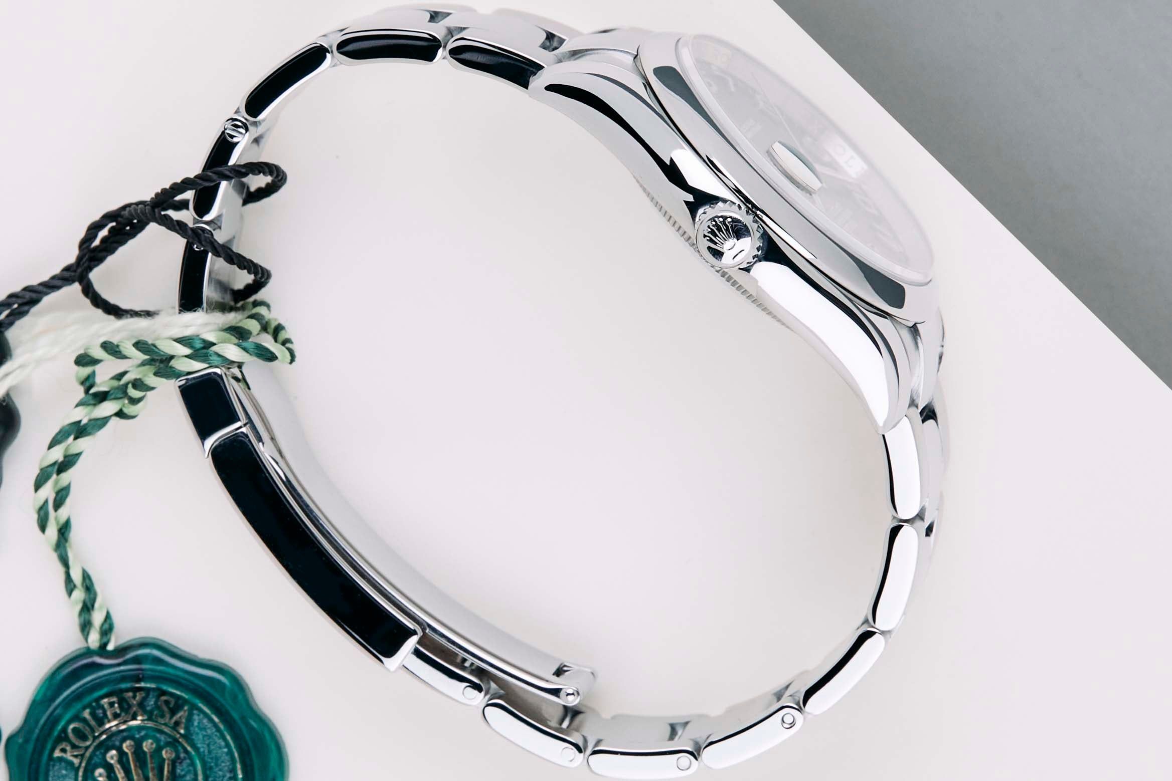 Full Set | Roulette Date wheel | European Rolex Warranty Card (LC138 - Netherlands) | Rolex Green Tag Included | Including Rolex Warranty Papaers from May 2022Rolex introduced the original Datejust in 1945 to celebrate the company's 40th anniversary. Due to the various case sizes and materials, the Datejust has been ingrained in Rolex's history and remains incredibly popular for 75 years.This Rolex Datejust 'Black Concentric Arabic Dial - Oyster Roulette' was sold for the first time in July 2019.This Datejust is made of Rolex' 904L stainless steel and is fitted with an Oyster bracelet.This Rolex Datejust 36 is in Mint condition and comes with the original Rolex Warranty Card and box. Furthermore, the watch has been serviced by our watchmaker, and therefore it comes with One Year of Steiner Warranty.