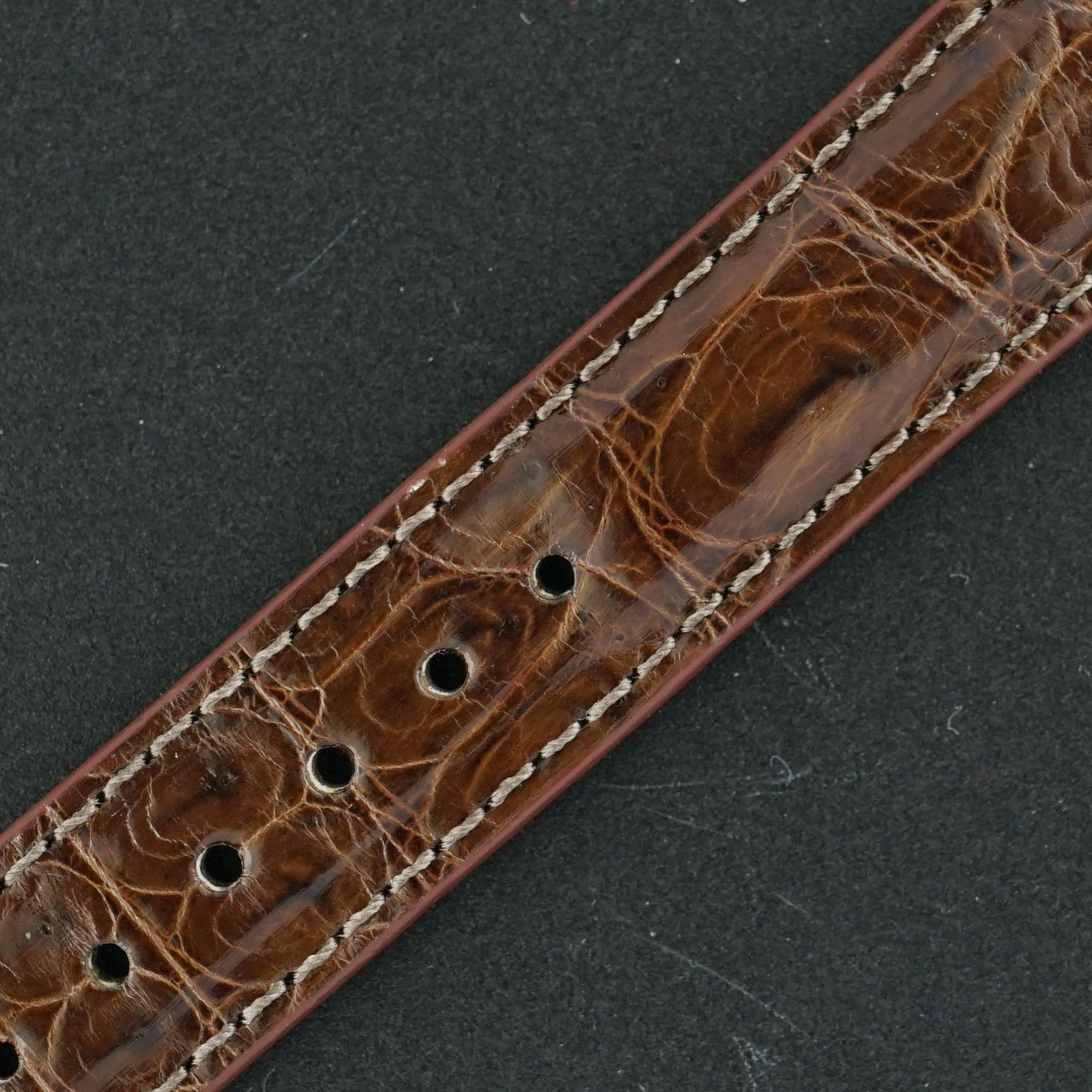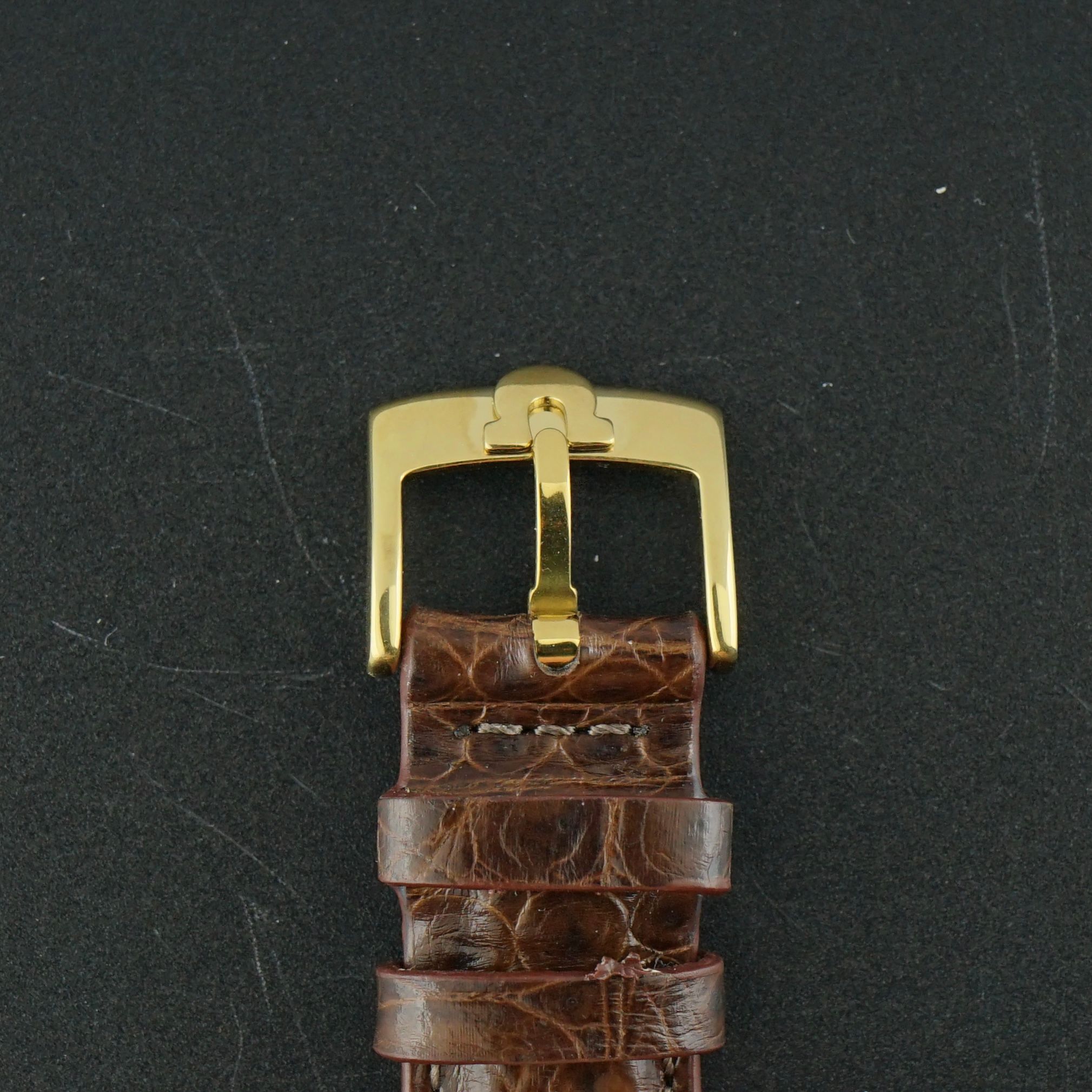 Strap: A top-grain brown leather strap with crocodile motif. (Fits a 12 to 20cm wrist)