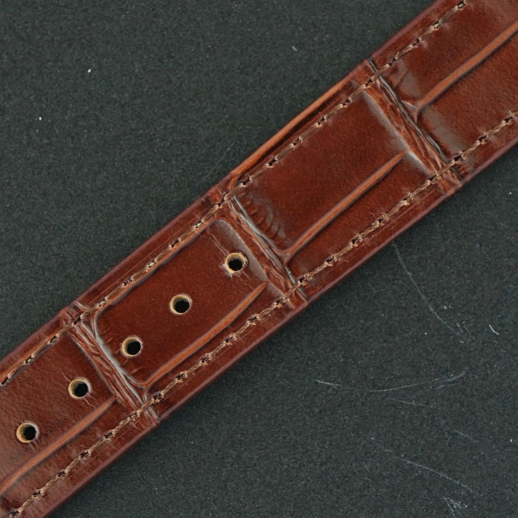 Strap: A brown made in France leather strap with crocodile motif. (Fits a 12 to 20cm wrist)