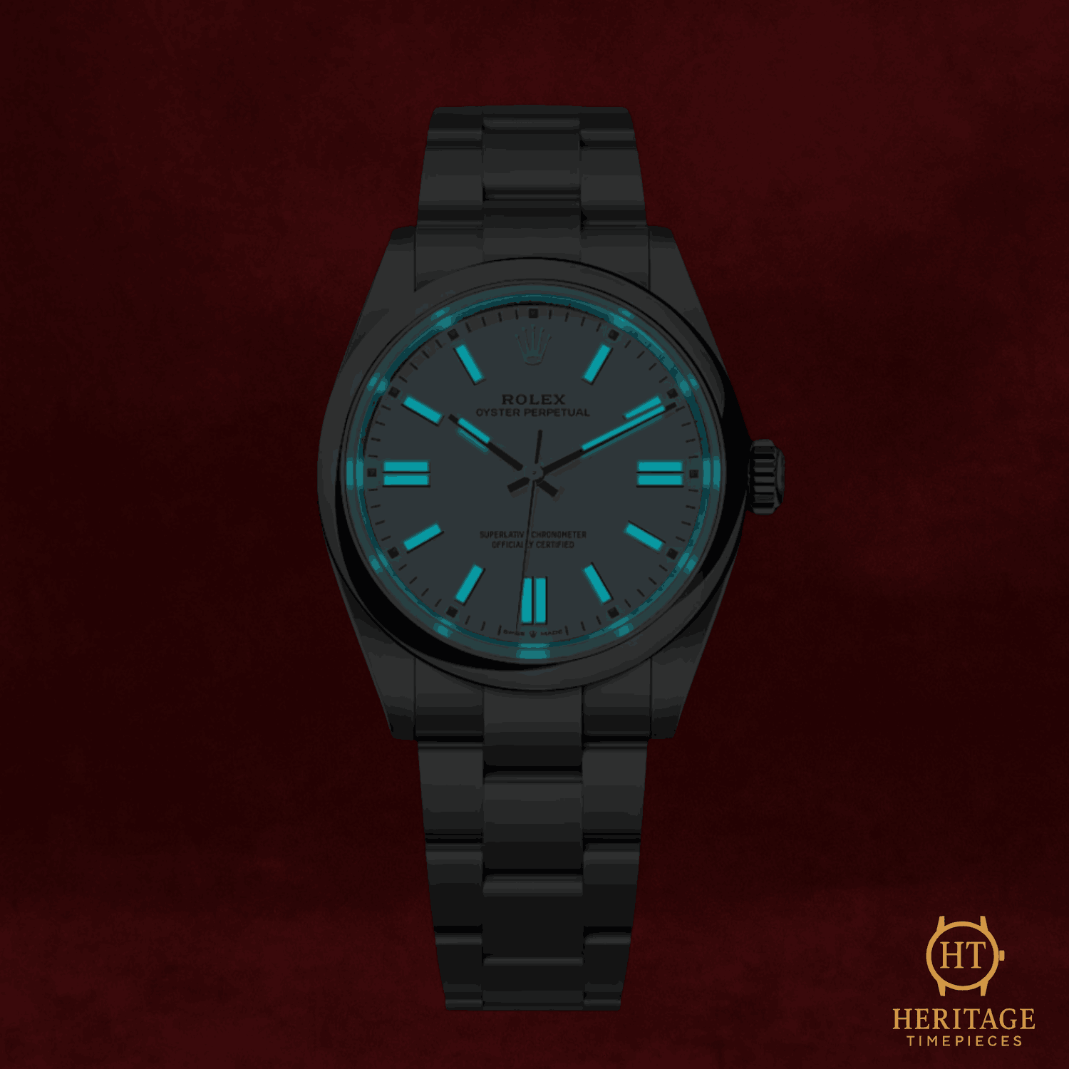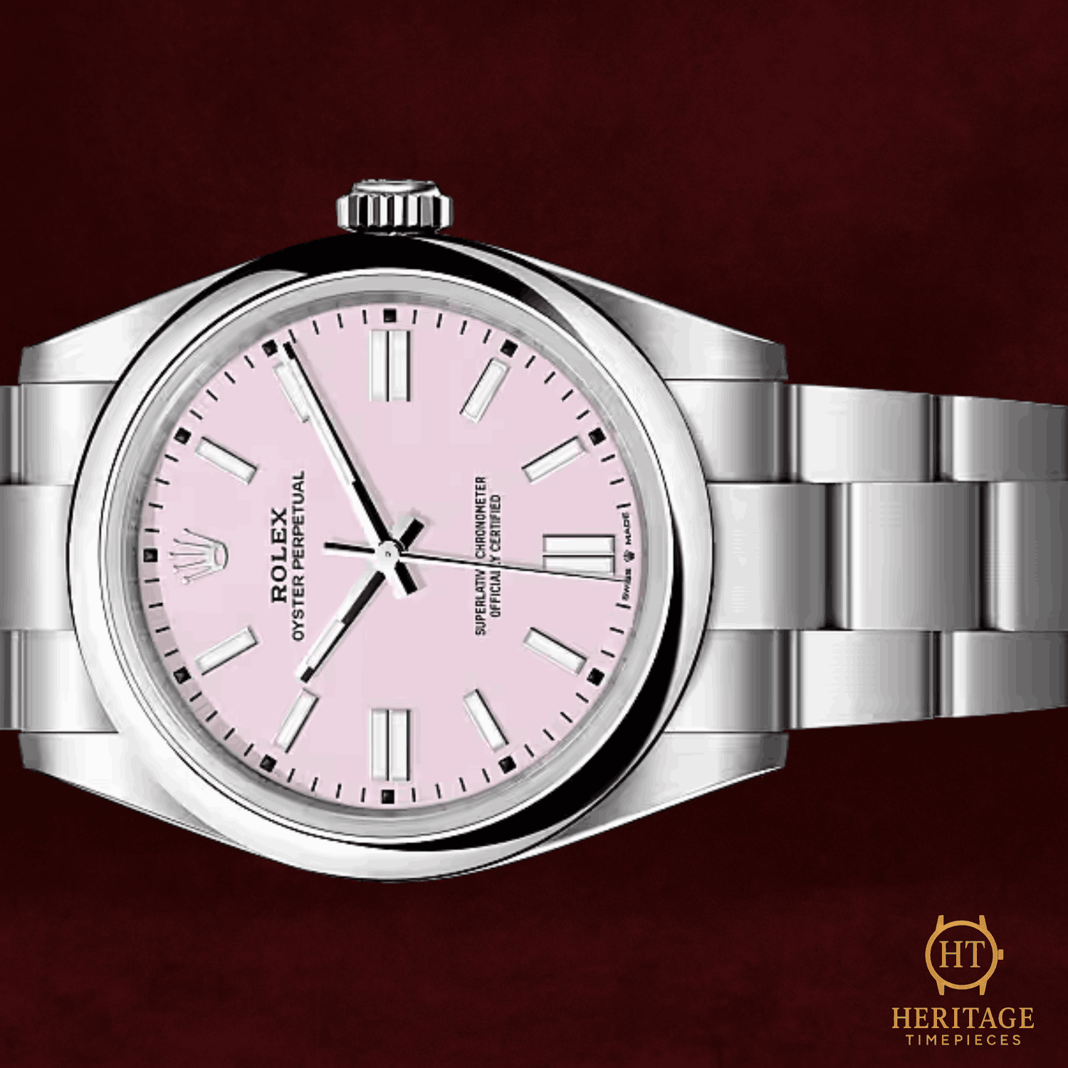 Heritage Narrative The Rolex Oyster Perpetual 41 reference 134300 represents Rolex in its purest form — time only, perfect proportions, and uncompromising quality. This 2026 example features the distinctive pink dial, adding a bold yet refined touch. Rooted in the 1926 Oyster case and the 1931 Perpetual rotor, the model carries the foundation of every modern Rolex. Technical Specifications Brand:Rolex Model:Oyster Perpetual 41 Reference:134300 Year:2026 Movement:Automatic mechanical movement (Rolex calibre 3230) Complications:Time only Case:Oystersteel case41 mm Bezel:Smooth domed Oystersteel bezel Crystal:Sapphire crystal Dial / Hands:Pink dialApplied baton hour markersChromalight display Strap:Oystersteel Oyster bracelet Clasp:Oysterclasp with Easylink comfort extension Water Resistance:100 m / 330 ft (factory specification) Condition & Inclusions Overall Condition:New / Unworn (collected 2026) Service Status:Factory condition Set:Full set — includes box and papers Shipping & Logistics The watch is stored securely and shipped fully insured within 1–3 business days. Worldwide shipping is available. Any applicable import duties or taxes are the responsibility of the buyer. Shipping & Returns Complimentary insured worldwide shipping and a 14-day return window. Each timepiece is authenticated, time-tested, and professionally prepared prior to dispatch. Secure packaging, tracking, and full insurance are included with every shipment.