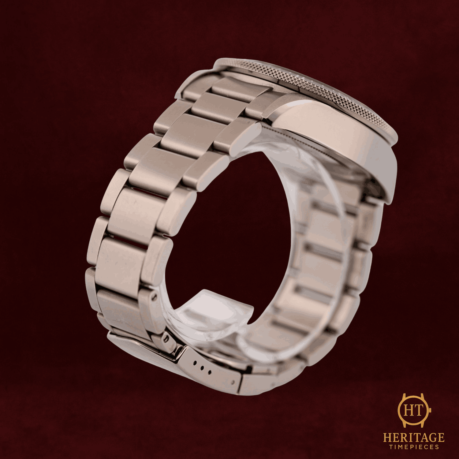 - Minor signs of wear such as hairline marks or small surface scratches. Case, bezel, and bracelet retain sharp edges and overall form. May have been professionally polished without affecting the original contours. Fully functional mechanically.