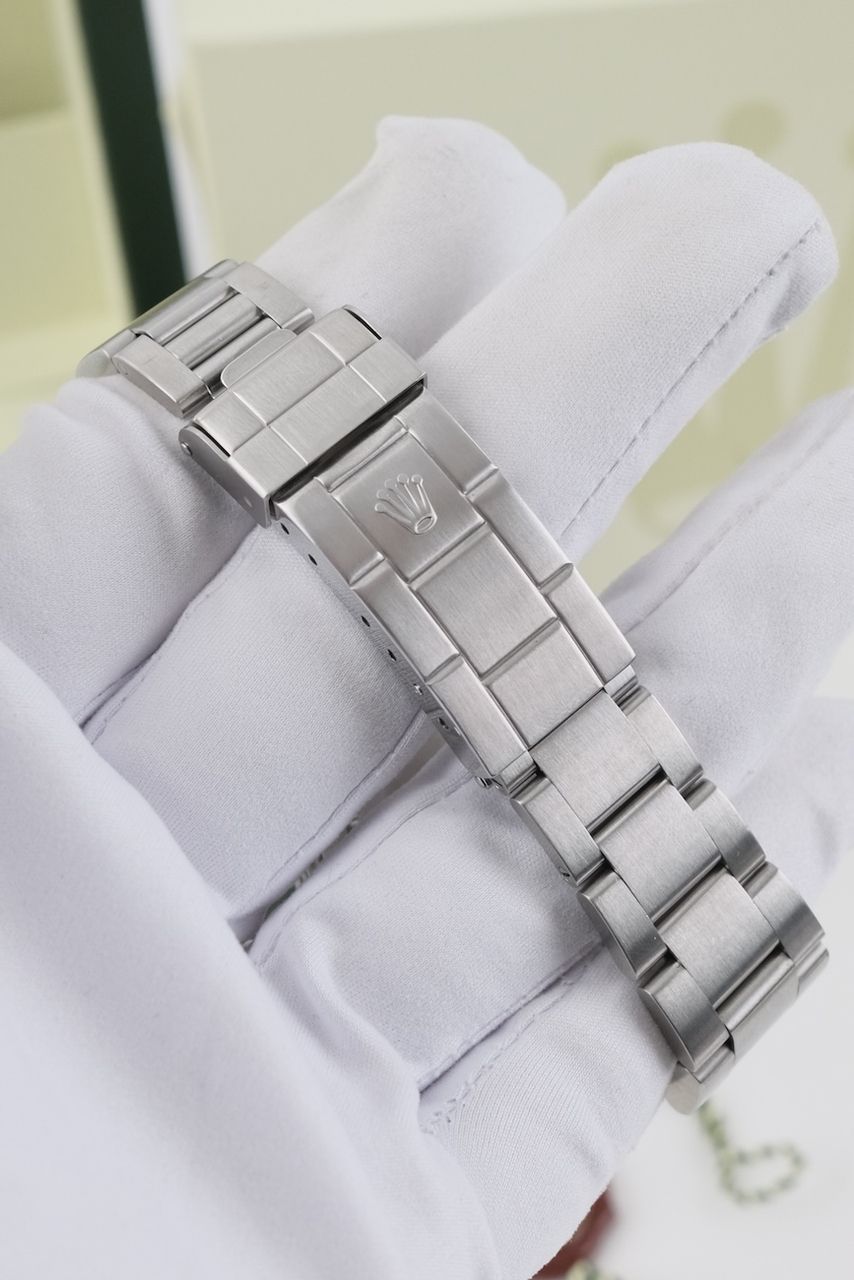 - Minor signs of wear such as hairline marks or small surface scratches. Case, bezel, and bracelet retain sharp edges and overall form. May have been professionally polished without affecting the original contours. Fully functional mechanically.