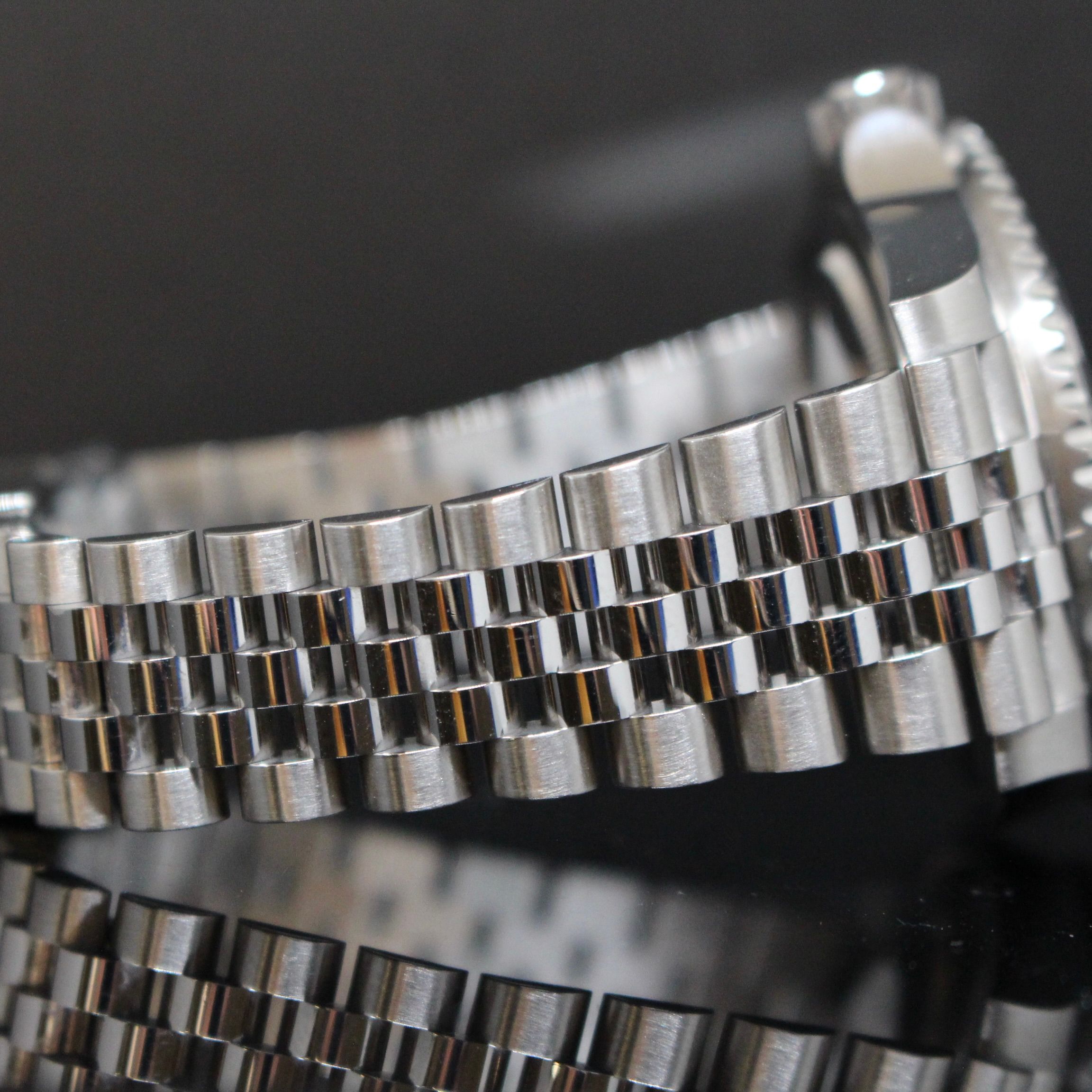 - Minor signs of wear such as hairline marks or small surface scratches. Case, bezel, and bracelet retain sharp edges and overall form. May have been professionally polished without affecting the original contours. Fully functional mechanically.