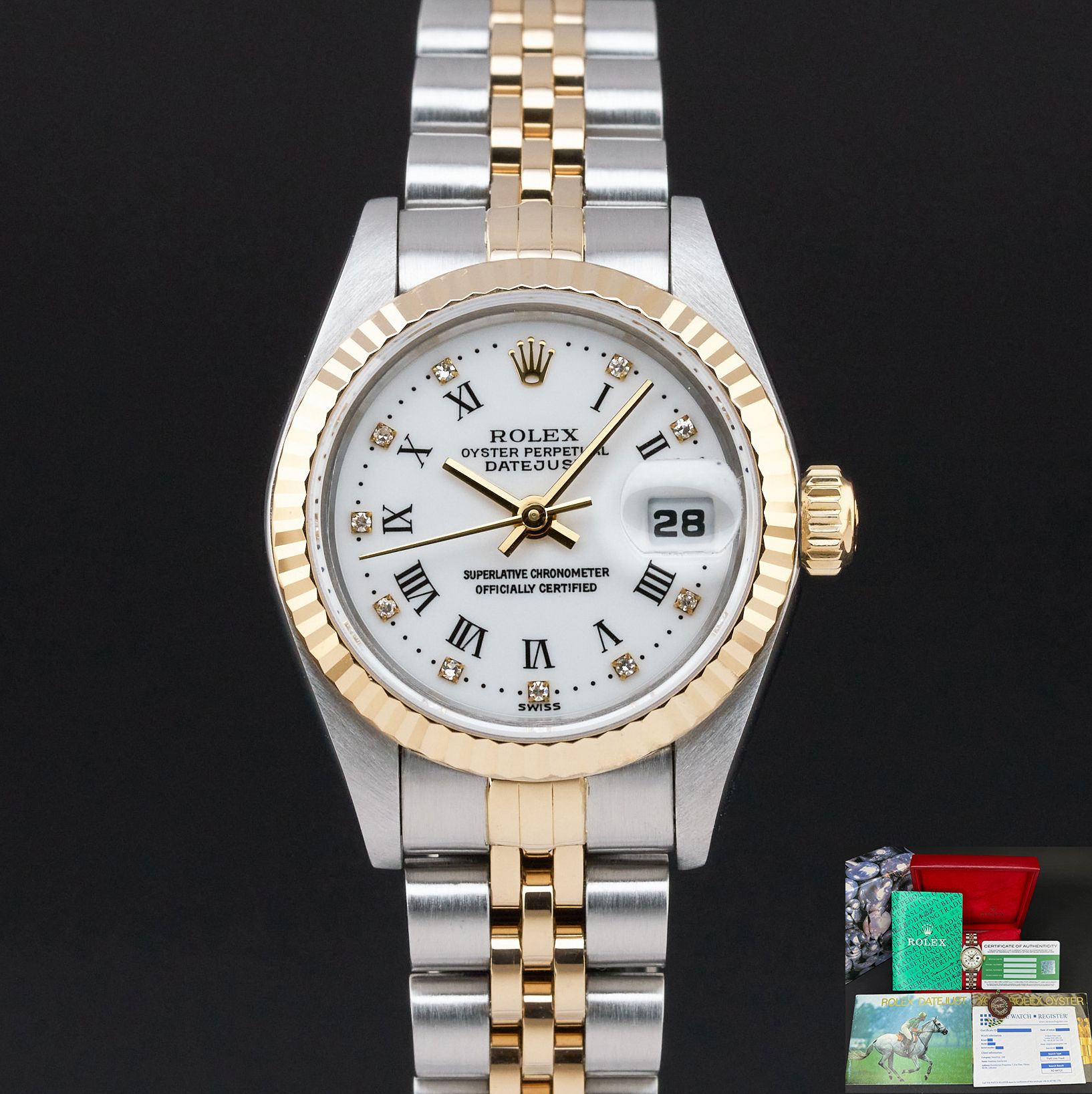 Rolex Lady Datejust, 69173, 26mm, 1997, Two-Tone, White Roman Small Diamond dial, Box, 1y warranty