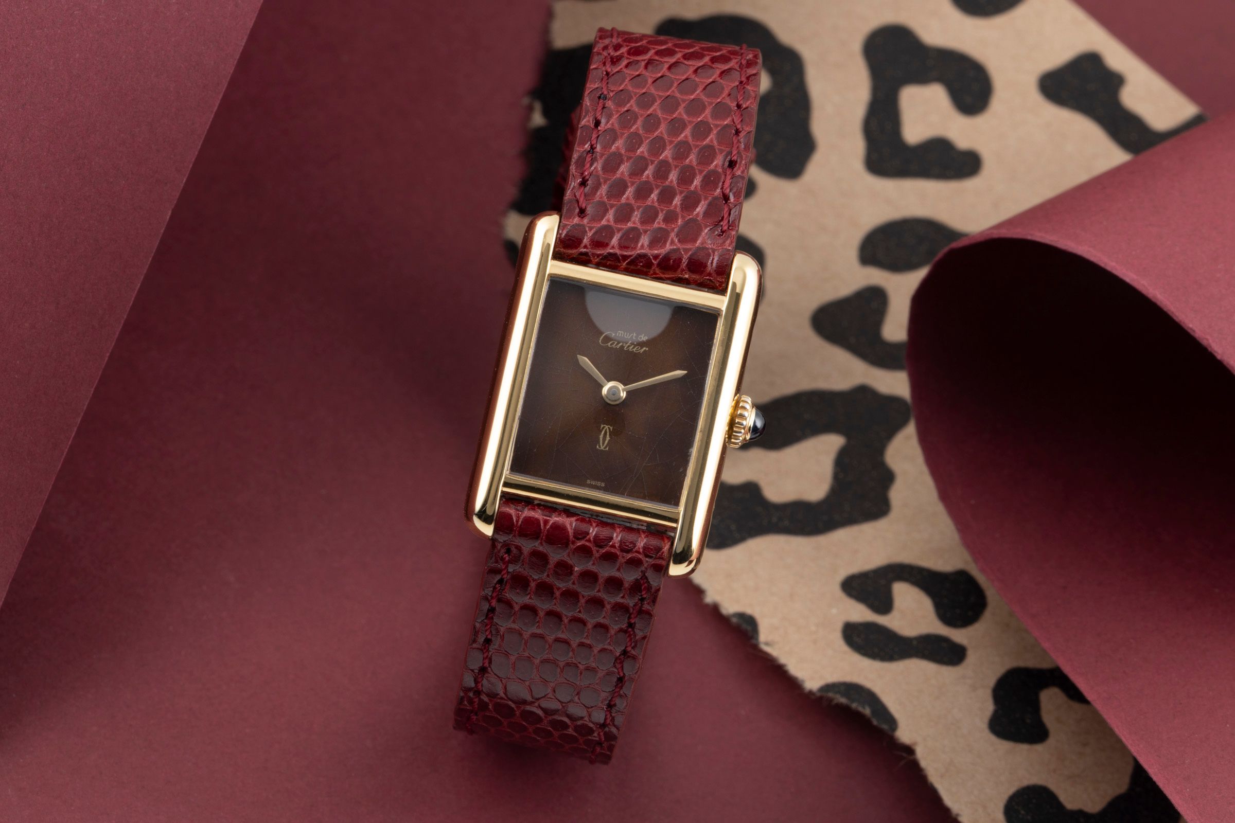 Alternative title: Cartier Tank Vermeil Silber vergoldet Rare Brown Spiderweb Dial Handaufzug [2601618]