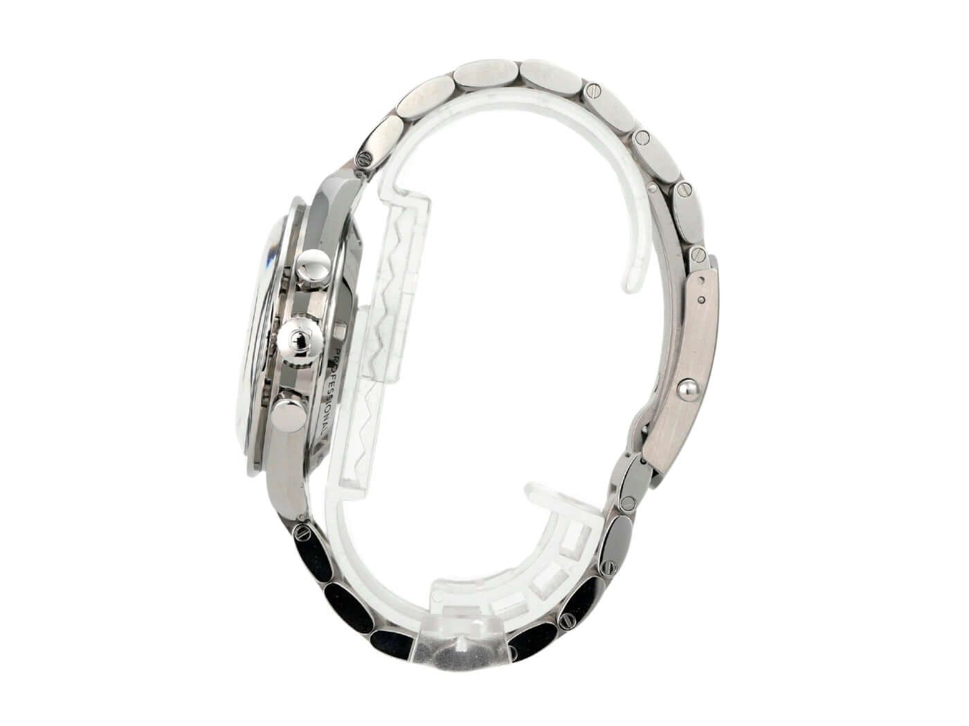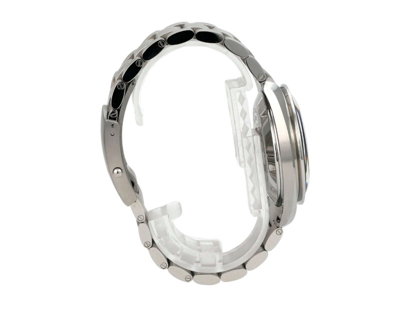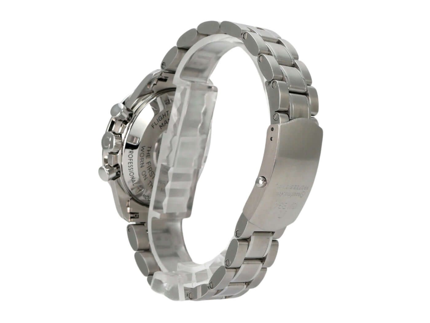 Case polished and satin-finished stainless steel, case diameter 42 mm, case height 14 mm, stainless steel bezel with black insert and tachymeter scale, stainless steel bracelet polished and satin-finished with safety folding clasp, black dial with luminous indices, luminous hands, manual winding movement, caliber Omega 1861, 21,600 A/h, power reserve approx. 48 hours, chronograph, small seconds at 9 o’clock, Hesalite crystal, screwed and engraved stainless steel case back, water-resistant up to 5 bar.