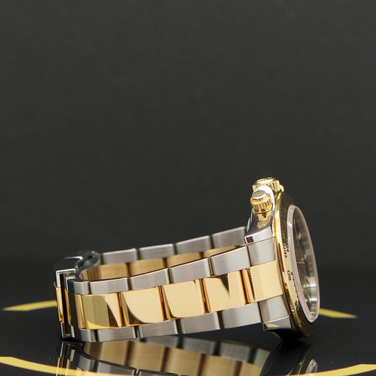 - Minor signs of wear such as hairline marks or small surface scratches. Case, bezel, and bracelet retain sharp edges and overall form. May have been professionally polished without affecting the original contours. Fully functional mechanically.