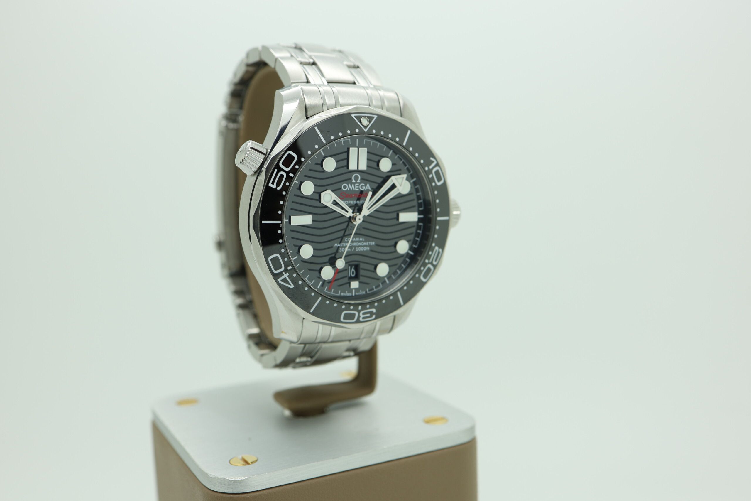 Dive into one of Omega’s most iconic modern sports watches with this Omega Seamaster Diver 300M reference 210.30.42.20.01.001, offered as a full set from 2019 and presented in very good condition. Instantly recognizable, this model features a robust 42 mm stainless steel case paired with a black ceramic bezel and a matching laser-engraved wave-pattern dial, combining contemporary design with professional dive functionality.