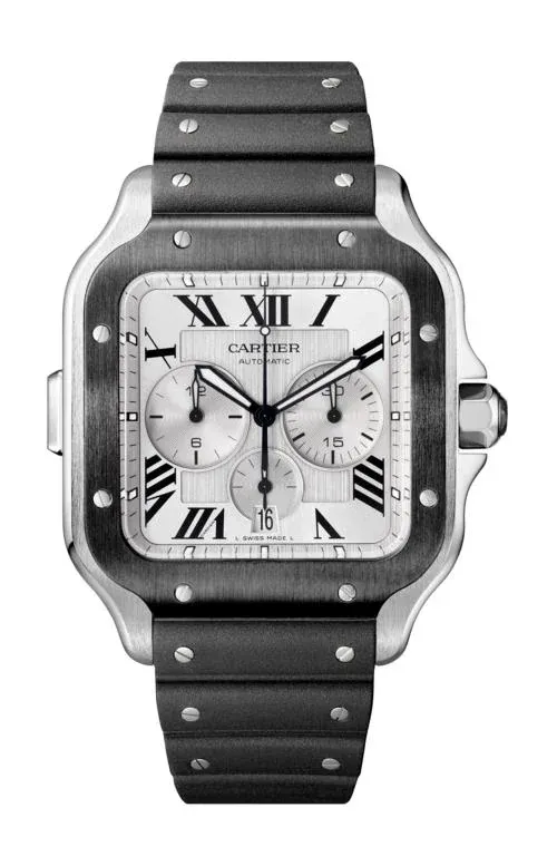 Cartier Santos Cartier Santos De Cartier, Modello Extra-Large, Acciaio E Caucciu, 2 Cinturini Intercambiabili WSSA0017