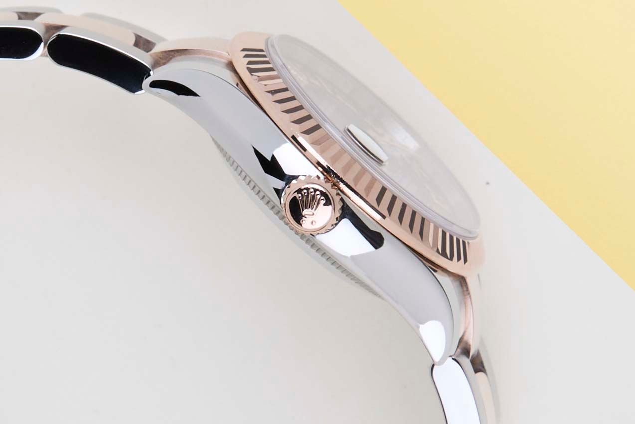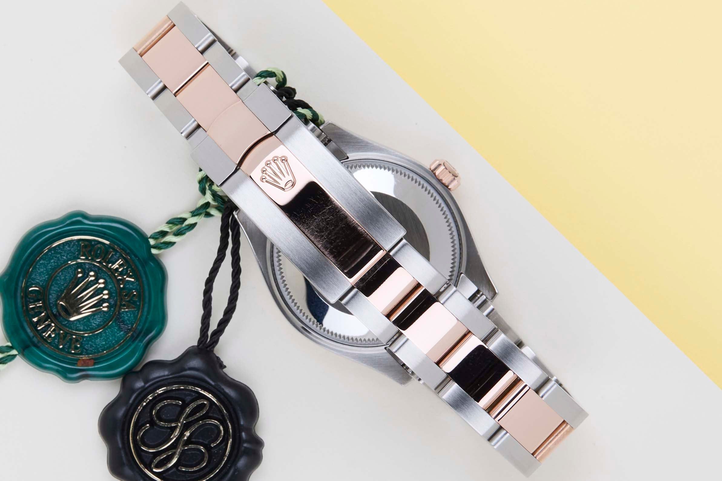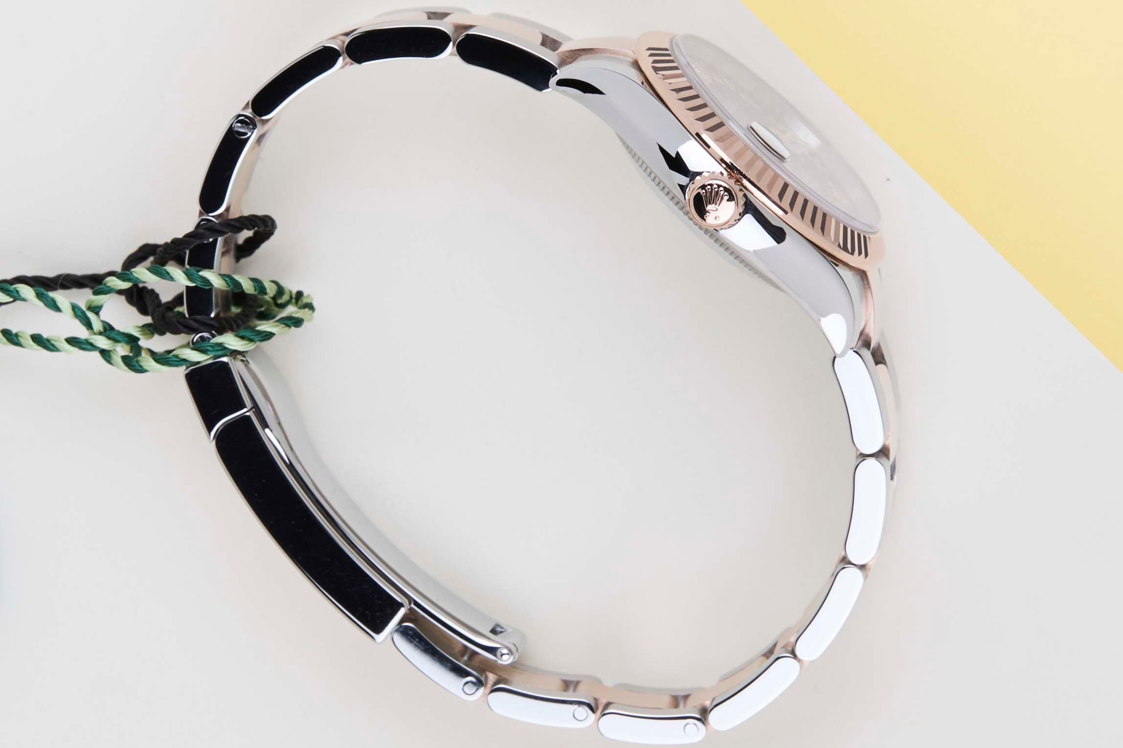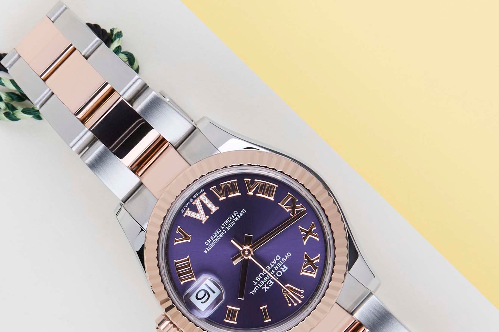 Rolex introduced the original Datejust in 1945 to celebrate the company's 40th anniversary. This Rolex Datejust 31 'Aubergine Diamond VI - Oyster' has been sold for the first time in September 2021.This Datejust is made of a combination of 18k Rose Gold and stainless steel and is fitted with an Oyster bracelet.This Rolex Datejust 31 is in Mint condition and comes with the original Rolex Warranty Card and box. Furthermore, the watch has been serviced by our watchmakers and therefore has One year of Steiner Warranty.