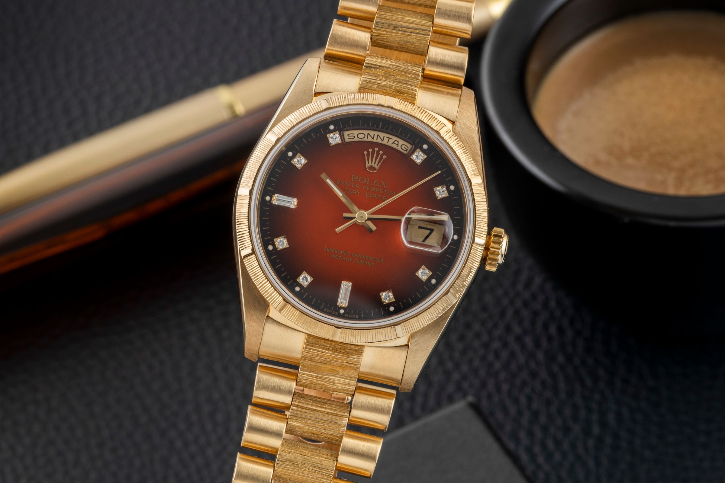 Alternative title: Rolex 18248 - Day-Date 36; Rolex Day-Date 18k Red Vignette Diamond Dial Borke Gold Automatik Ref. 18248 [2506194]