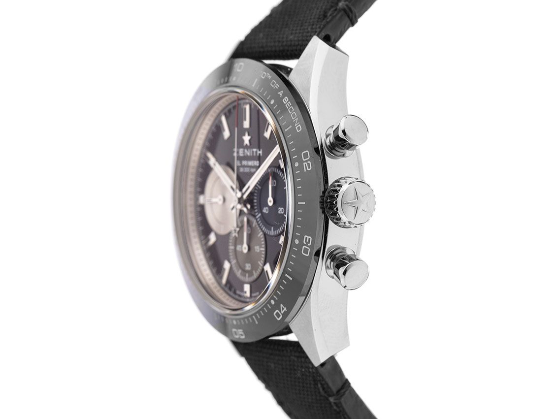 Zenith Chronomaster Sport Stahl Keramik Automatik Chronograph Armband Textil Sicherheitsfaltschließe