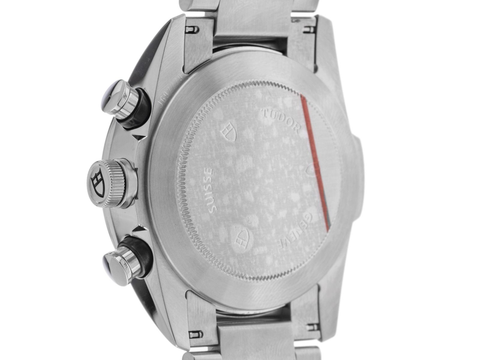 Gehäuse Edelstahl poliert und satiniert, Gehäusedurchmesser ohne Krone 42mm, Gehäusehöhe 14,2mm. Lünette Edelstahl mit Tachymeterskala. Armband Edelstahl poliert satiniert, Sicherheitsfaltschließe Edelstahl mit Hersteller-Logo. Zifferblatt silberfarben mit aufgesetzten Indexen und skelettierten Edelstahl Zeigern. Uhrwerk Automatik, Chronograph, Kaliber Tudor 7753 mit 27 Edelsteinen. Anzeige von Stunde und Minute über Zeiger aus der Mitte, kleine Sekunde mit Sekundenstopp zur sekundengenauen Einstellung der Uhrzeit bei 9 Uhr. Datumsanzeige mit Schnellverstellung zwischen 4 und 5 Uhr, Schnellkorrektur des Datums mit wappenförmiger PVD-Einfassung bei 9 Uhr am Gehäuse. Saphirglas kratzfest. Krone verschraubbar mit Hersteller-Logo. Boden Edelstahl verschraubt und graviert. Gewicht der Uhr inklusive Armband 202g, Länge des Armbandes inklusive Gehäuse 205mm. Referenznummer: 4200, Gehäusenummer: J692XXX, ID: P255140000226H-5900, Artikelnummer: 10000084867. Mit Gangkontrolle und kompletter äußerlicher Aufarbeitung von Februar 2026. Original Tudor Box mit Umkarton und Garantie Papiere von Februar 2015, LC 100 / Germany EU, sowie Beschreibung, Stellstift, Erstkaufrechnung von Wempe und Watchregister Auszug von Februar 2026, The Watch Register Zertifikat / ohne Eintrag (Internationale Datenbank für verlorene oder gestohlene Uhren), Full Set. Wie Neu. Lieferzeit sofort.