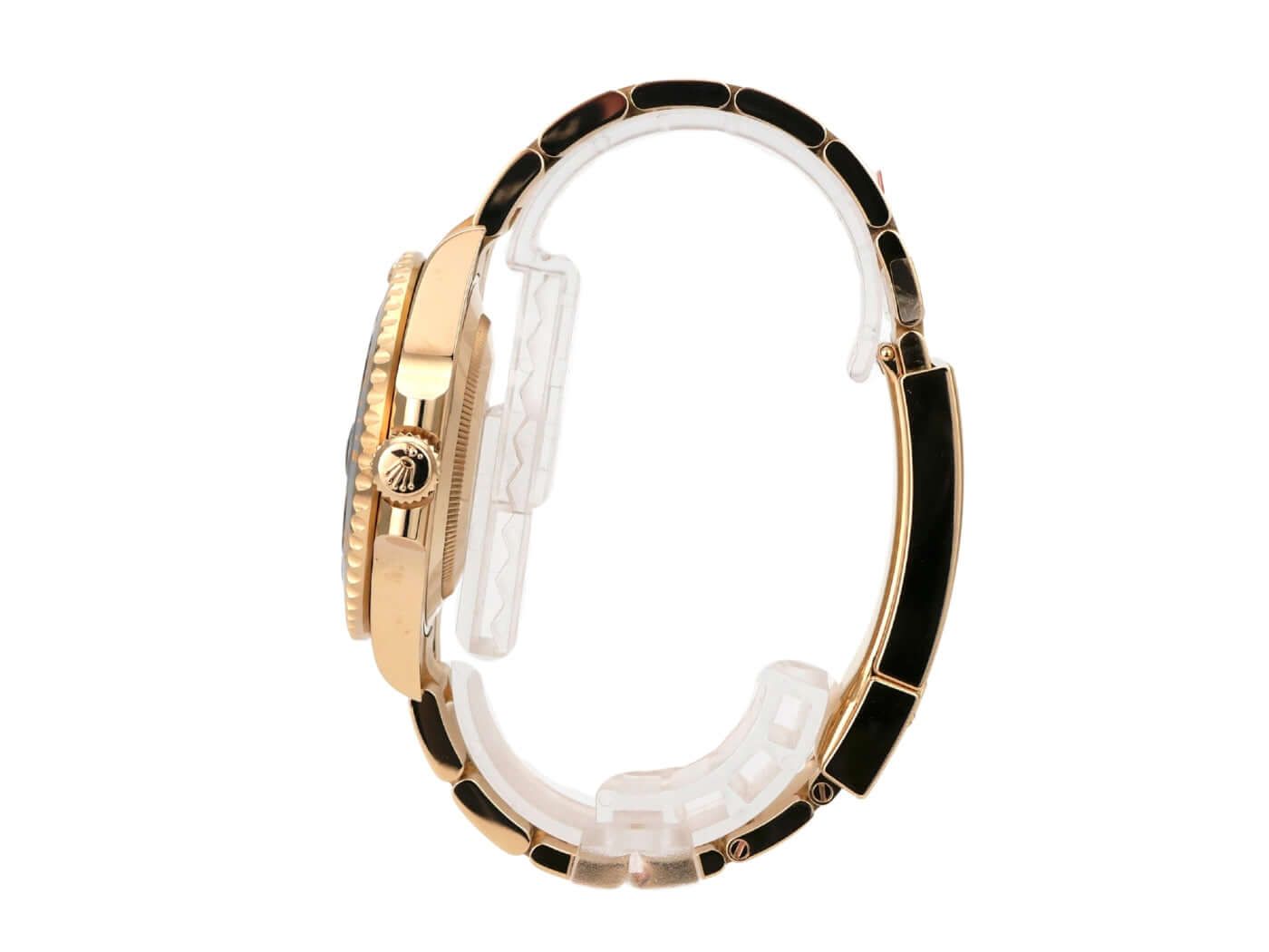 Case made of 18 karat yellow gold, polished and satin-finished, case diameter 41 mm, case height 12.5 mm, 18 karat yellow gold bezel with fluting and black ceramic inlay, 60-minute scale and luminous dot, rotatable, Oyster 18 karat yellow gold bracelet polished and satin-finished with safety folding clasp, black dial with applied luminous markers and dots, luminous hands, automatic movement, caliber Rolex 3235 with 31 jewels, 28,800 vibrations per hour, 70 hours power reserve, date display with quick adjustment and magnifier, chronometer, sapphire crystal, screw-down crown with crown guards, screw-down 18 karat yellow gold back, water-resistant up to 30 bar.