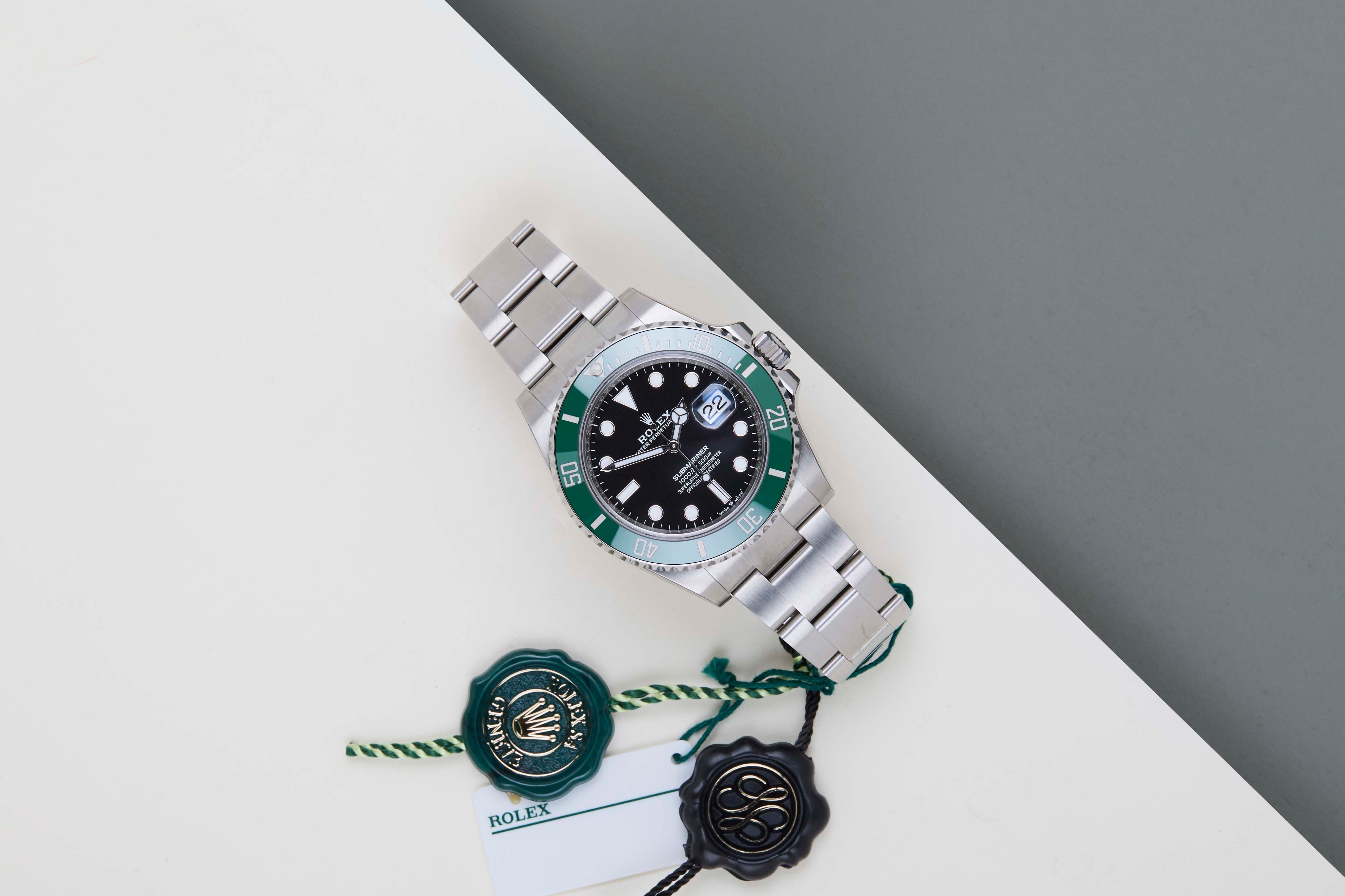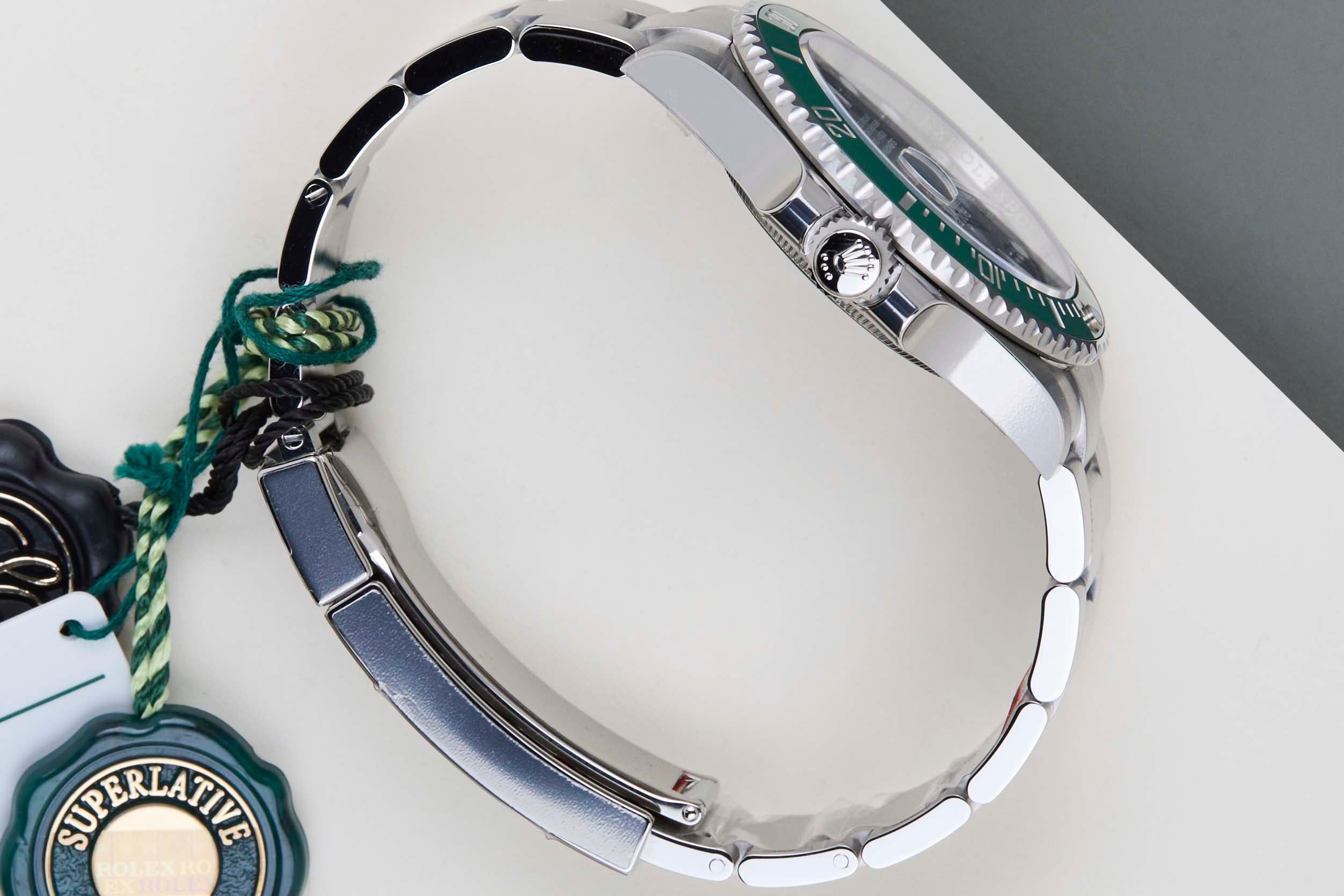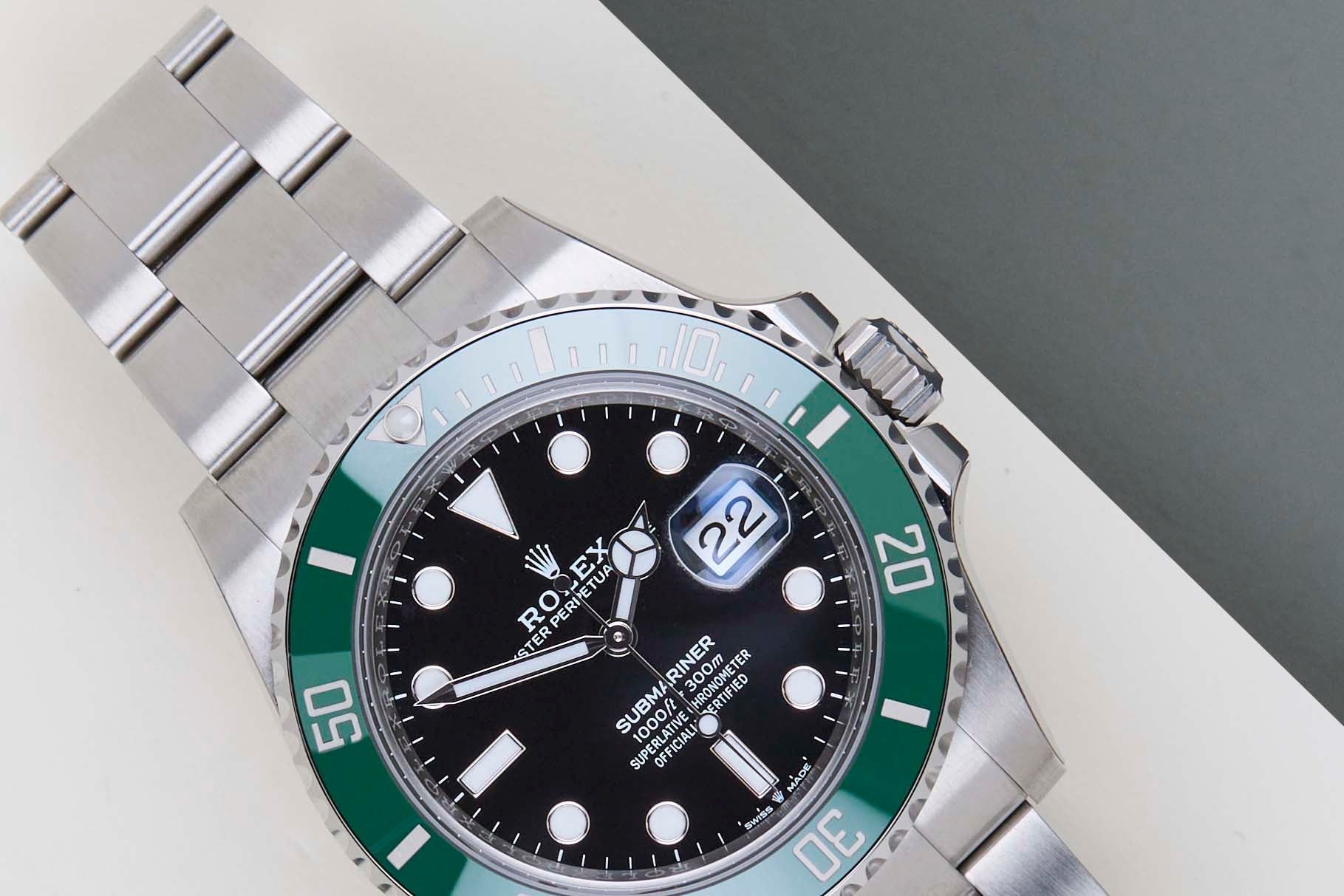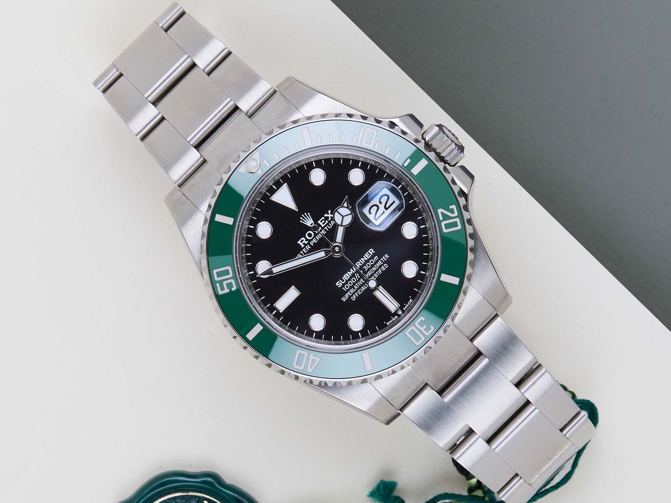 New & Unworn (Partly Stickered) | Full Set | International Rolex Warranty Until July 2027 | Including Rolex White TagThe Rolex Submariner was introduced by Rolex in 1953. It is known for its durability, reliability, and precision, and it has become one of the most iconic and recognizable watch models in the world. This new series of Rolex Submariner was first introduced in the Summer of 2020. For the first time in Rolex's history, the Oyster case of the new Submariner has been enlarged to 41mm, up from 40mm.This Rolex Submariner Date reference 126610LV is equipped with the new-generation Calibre 3235. The new Calibre 3235 boasts an increased power reserve of 70 hours compared to the 48-hour power reserve of Calibre 3135.This Rolex Submariner Date was sold for the first time in July 2022.The watch is fully made out of stainless steel. Rolex uses 904L in its steel watches, which is an extremely resistant and highly polishable superalloy. This generation of the Submariner is equipped with a Chromalight dial which can be recognized by the blue lume. This Submariner Date comes with a black dial and green bezel, which can be derived from the reference 126610LV, Lunette Verte.This Rolex Submariner Date is in a New & Unworn condition and comes with the original Rolex Warranty Card and original box. Furthermore, the watch still has International Rolex Warranty until July 2022.