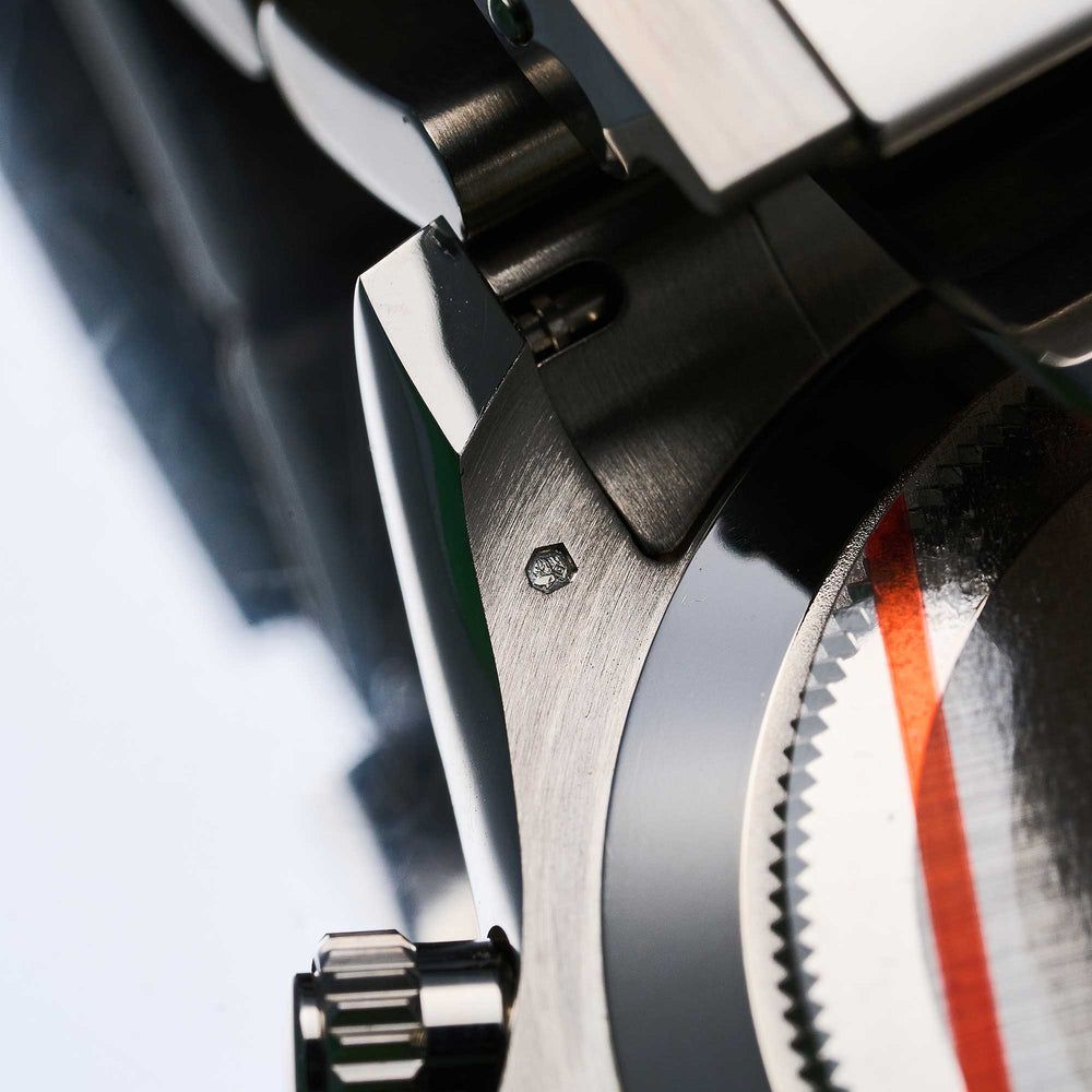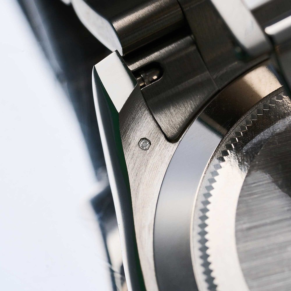 - Minor signs of wear such as hairline marks or small surface scratches. Case, bezel, and bracelet retain sharp edges and overall form. May have been professionally polished without affecting the original contours. Fully functional mechanically.