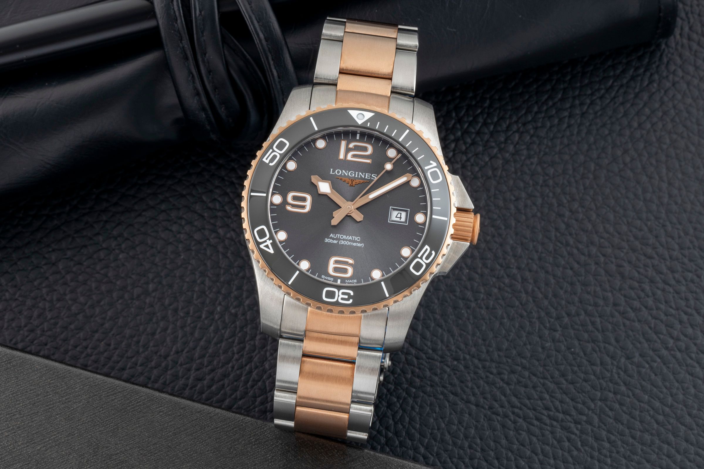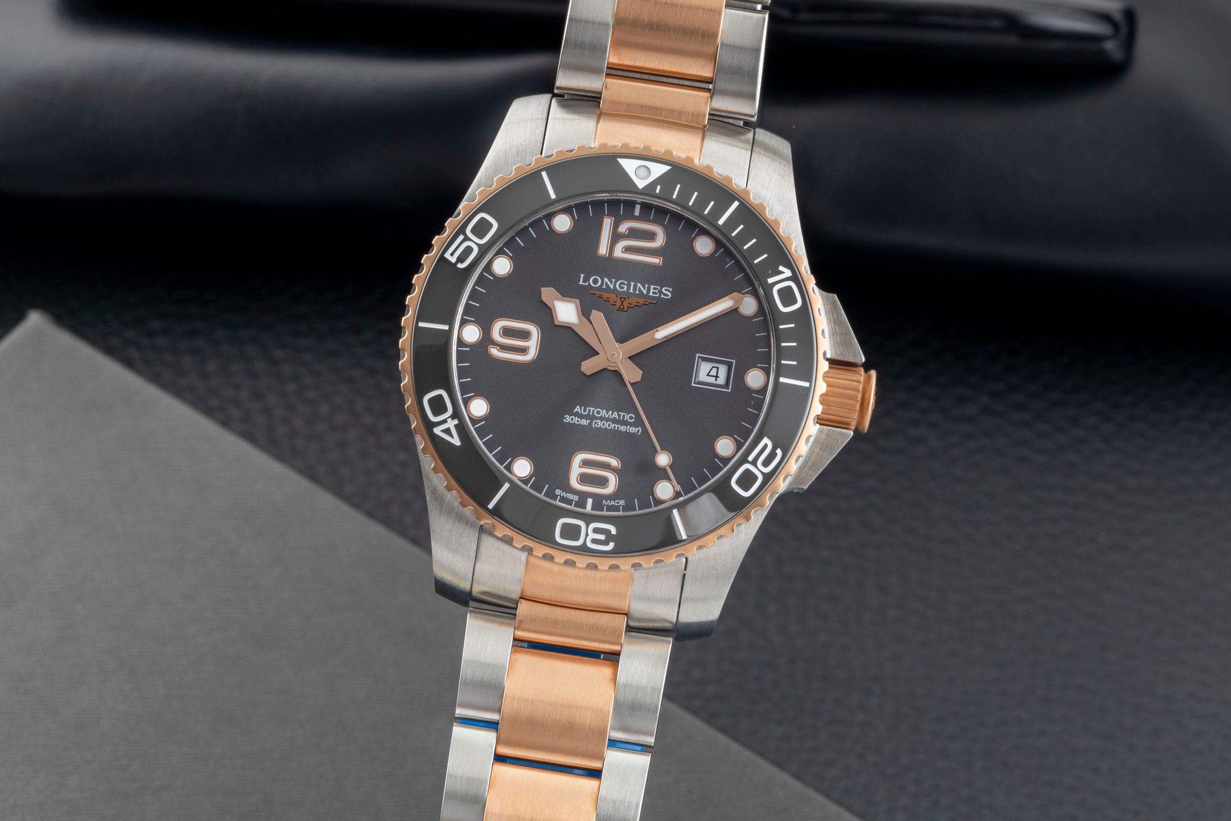 Alternative title: Longines L3.782.3.78.7 HydroConquest 43 Automatic Stainless Steel - Pink Gold / Grey / Bracelet; Longines HydroConquest Stahl Automatik Herrenuhr Ref. L3.782.3.78.7 B&P 2022 [2602092]