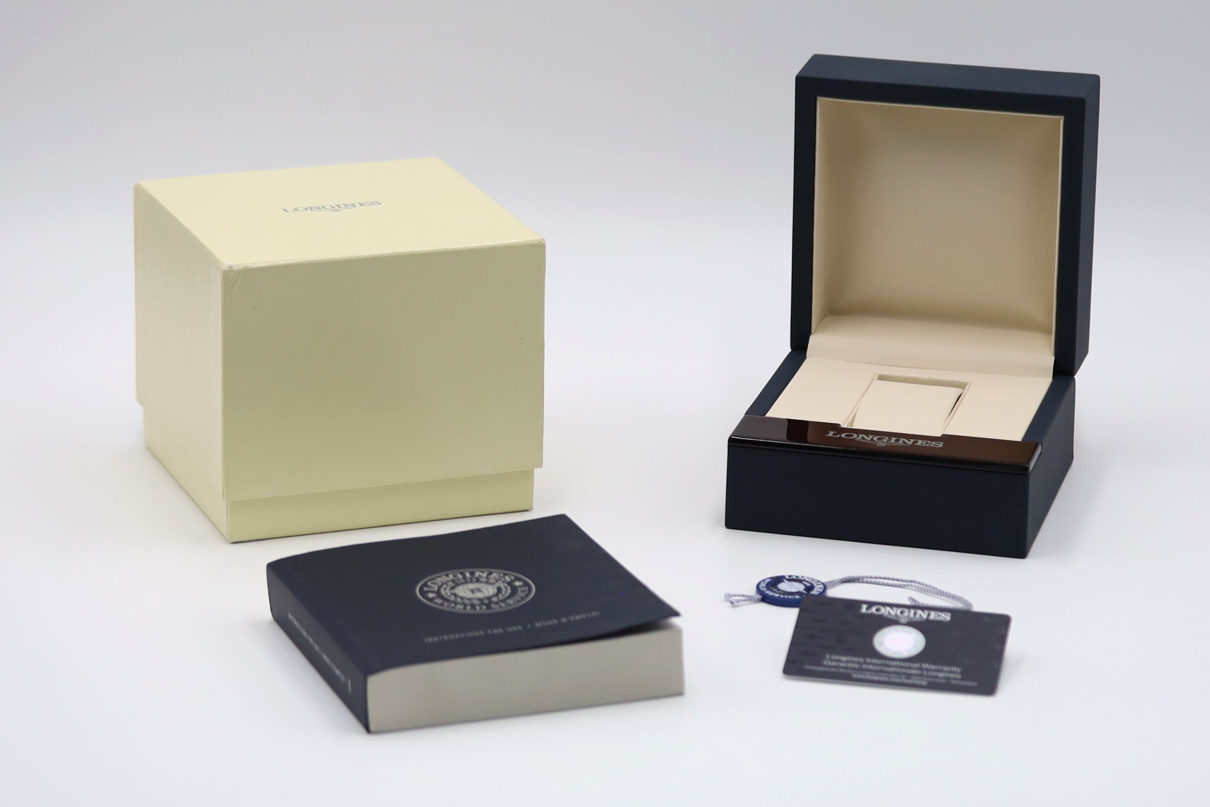 Accessories: Original Longines box as pictured, Original papers as pictured, Booklets as pictured