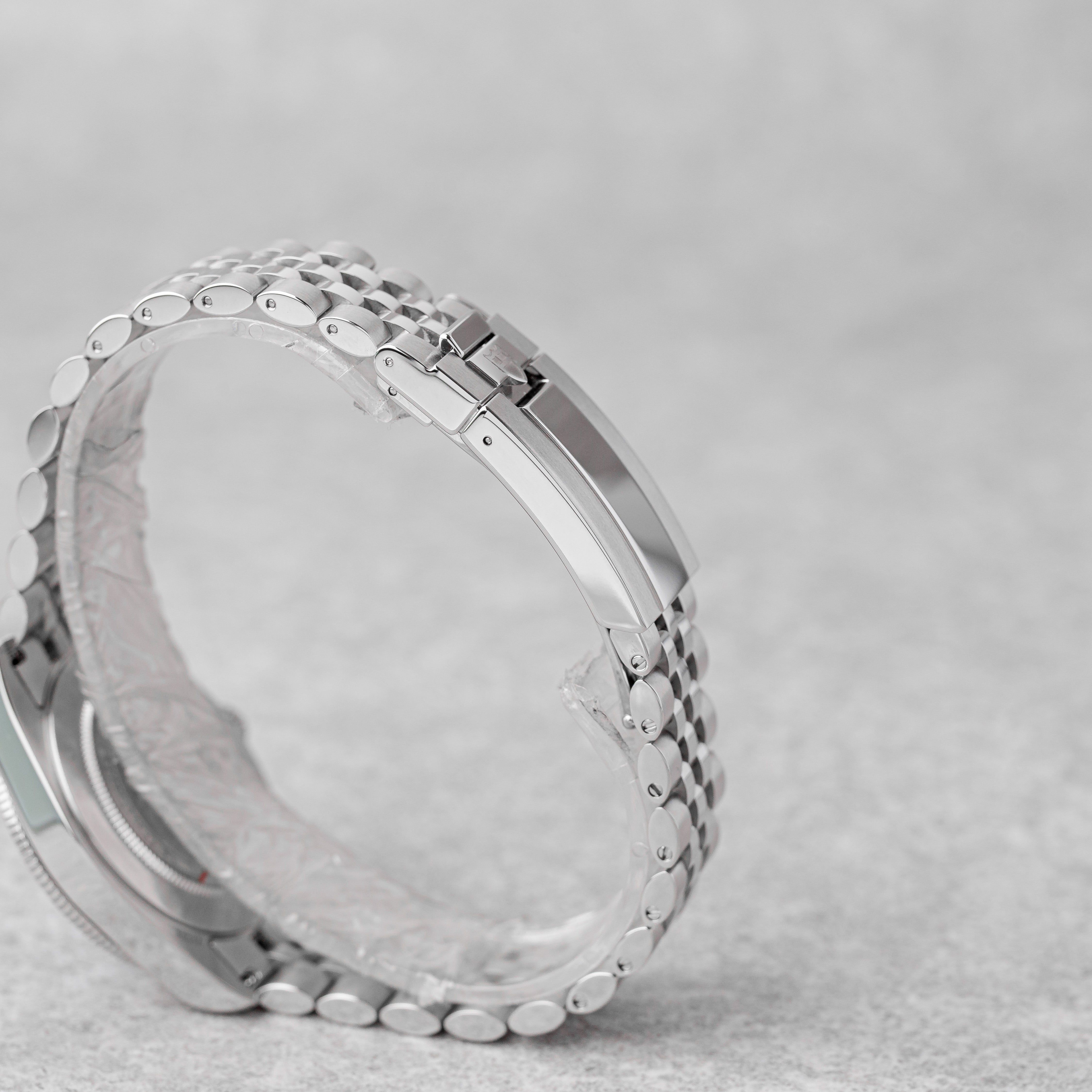- Minor signs of wear such as hairline marks or small surface scratches. Case, bezel, and bracelet retain sharp edges and overall form. May have been professionally polished without affecting the original contours. Fully functional mechanically.
