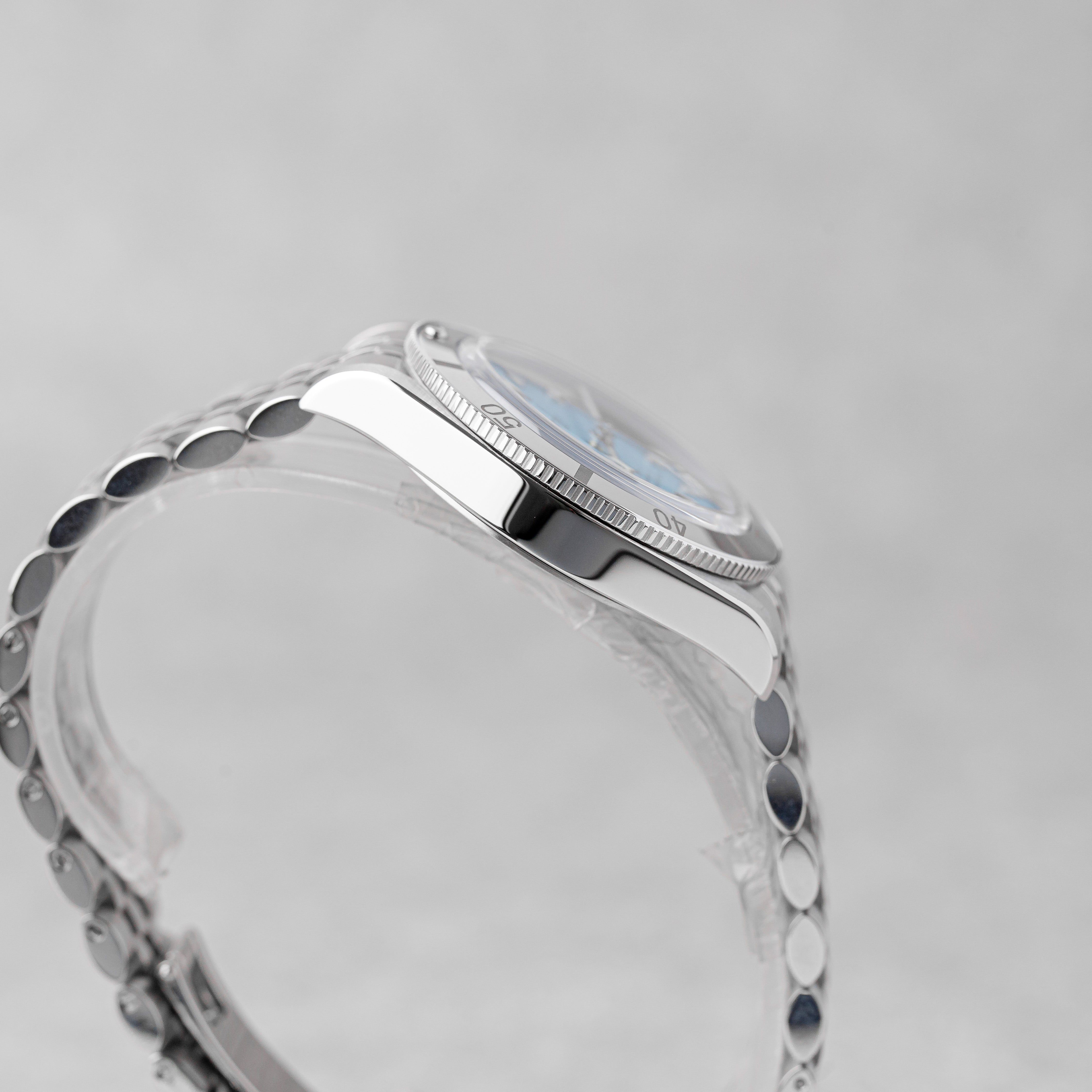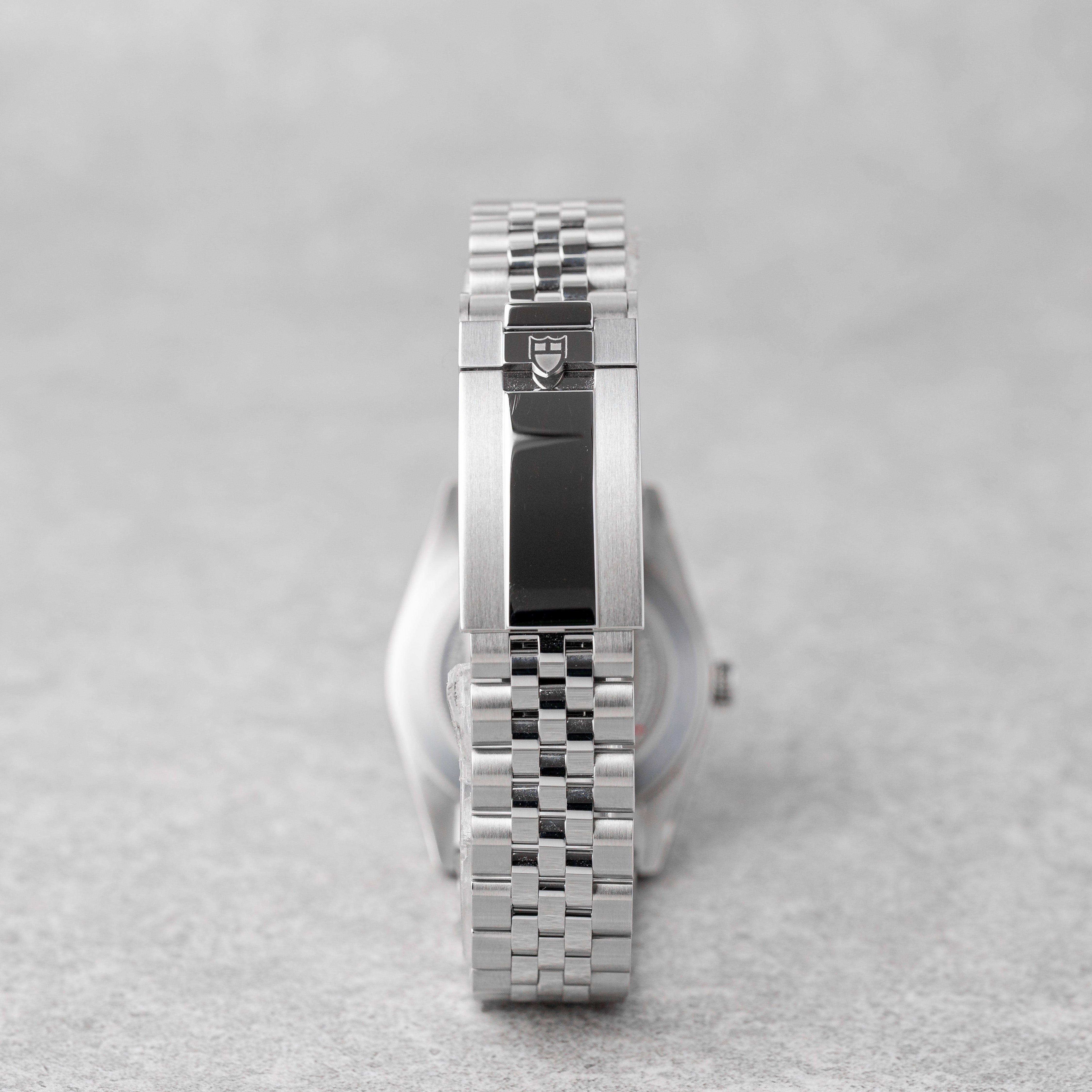 A fresh and highly desirable release, this Tudor Black Bay 54 features the stunning “Blue Lagoon” dial, bringing a vibrant and modern twist to Tudor’s vintage-inspired diver. Offered brand new, as a Full Set from 2026, it is covered by the Tudor international guarantee until 02/2031. A compact and stylish diver, combining heritage design with contemporary appeal — perfect for everyday wear or collection.
