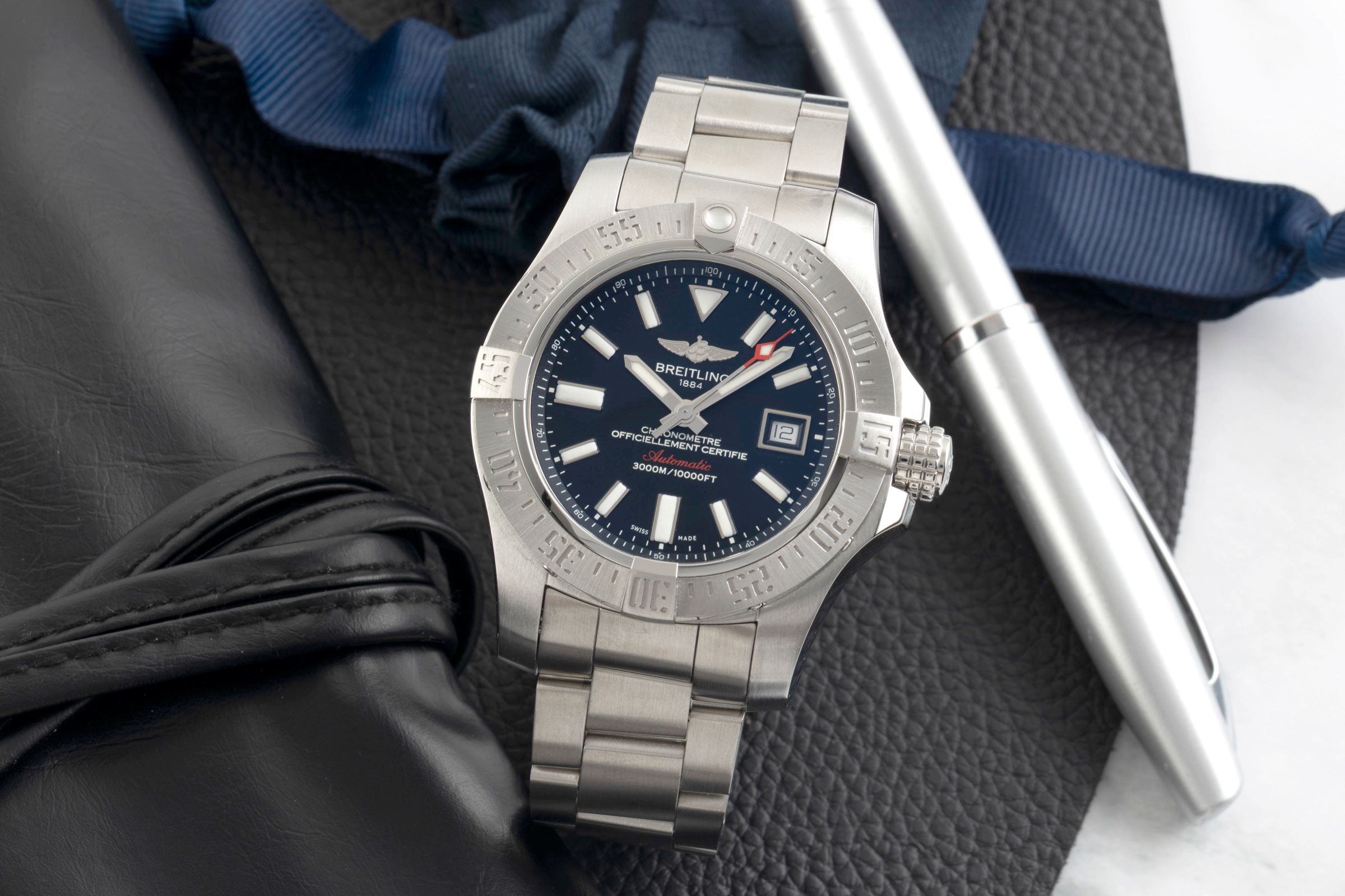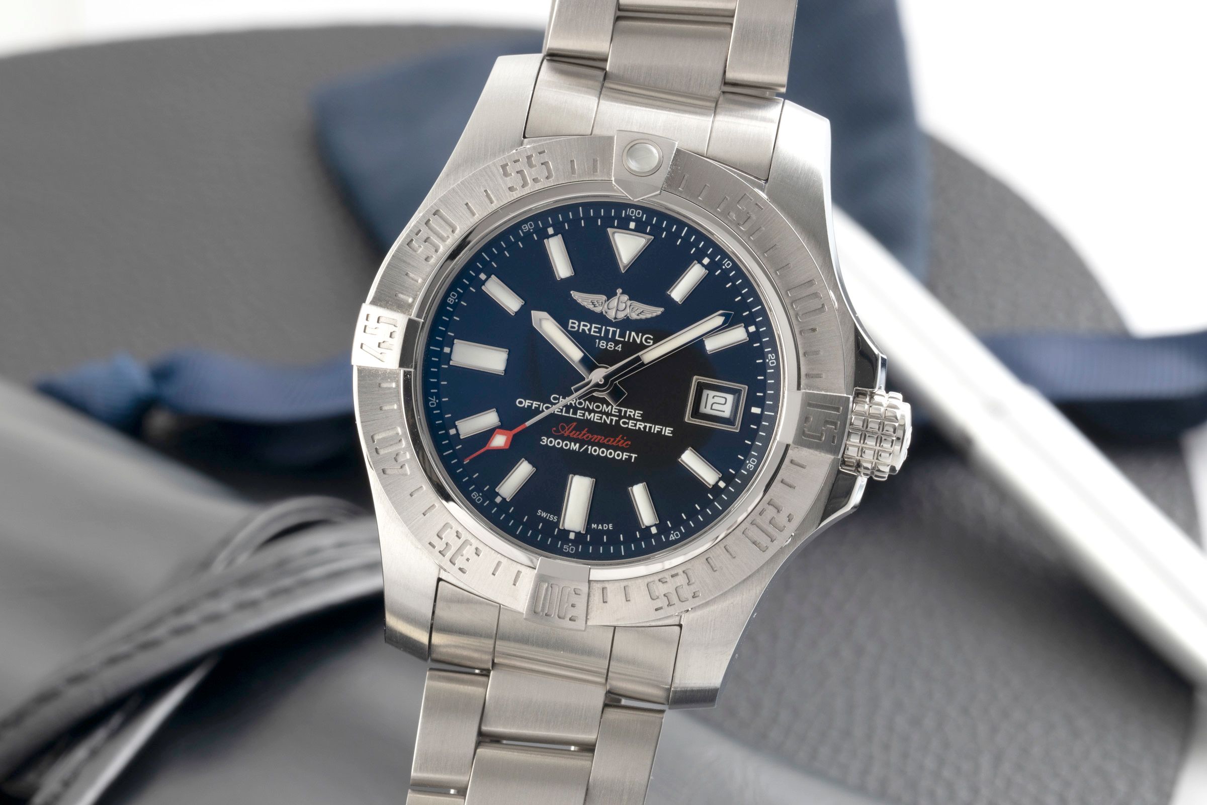 Accessories: Original Breitling box as pictured, Original papers as pictured, Booklets as pictured