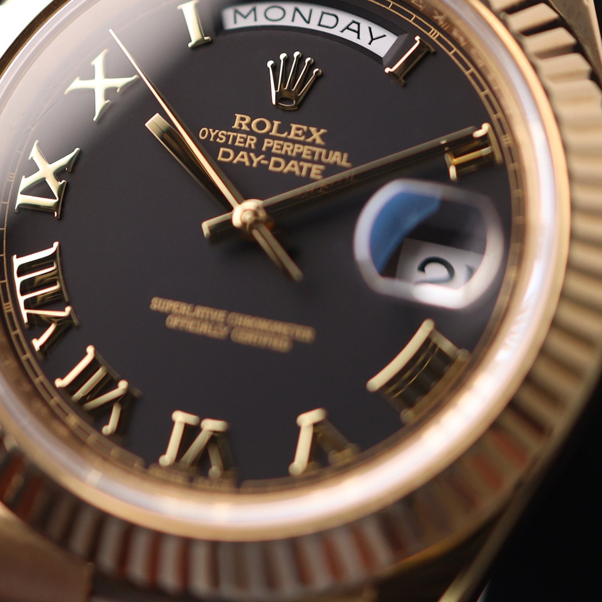 Day-Date II Yellow Gold Black Roman Dial