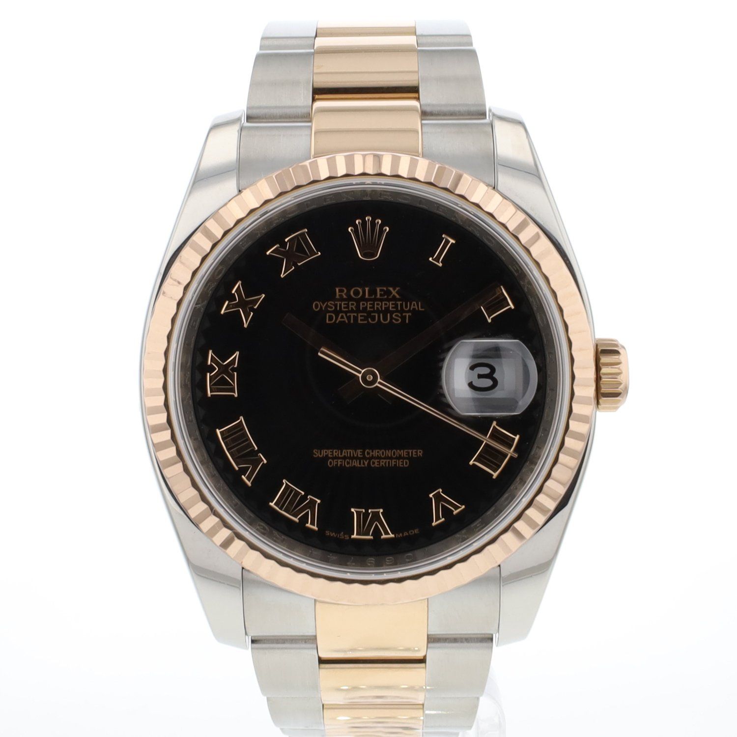 Rolex Datejust 36 Datejust 36 Steel/Everose Oyster Black Roman Sunburst Dial