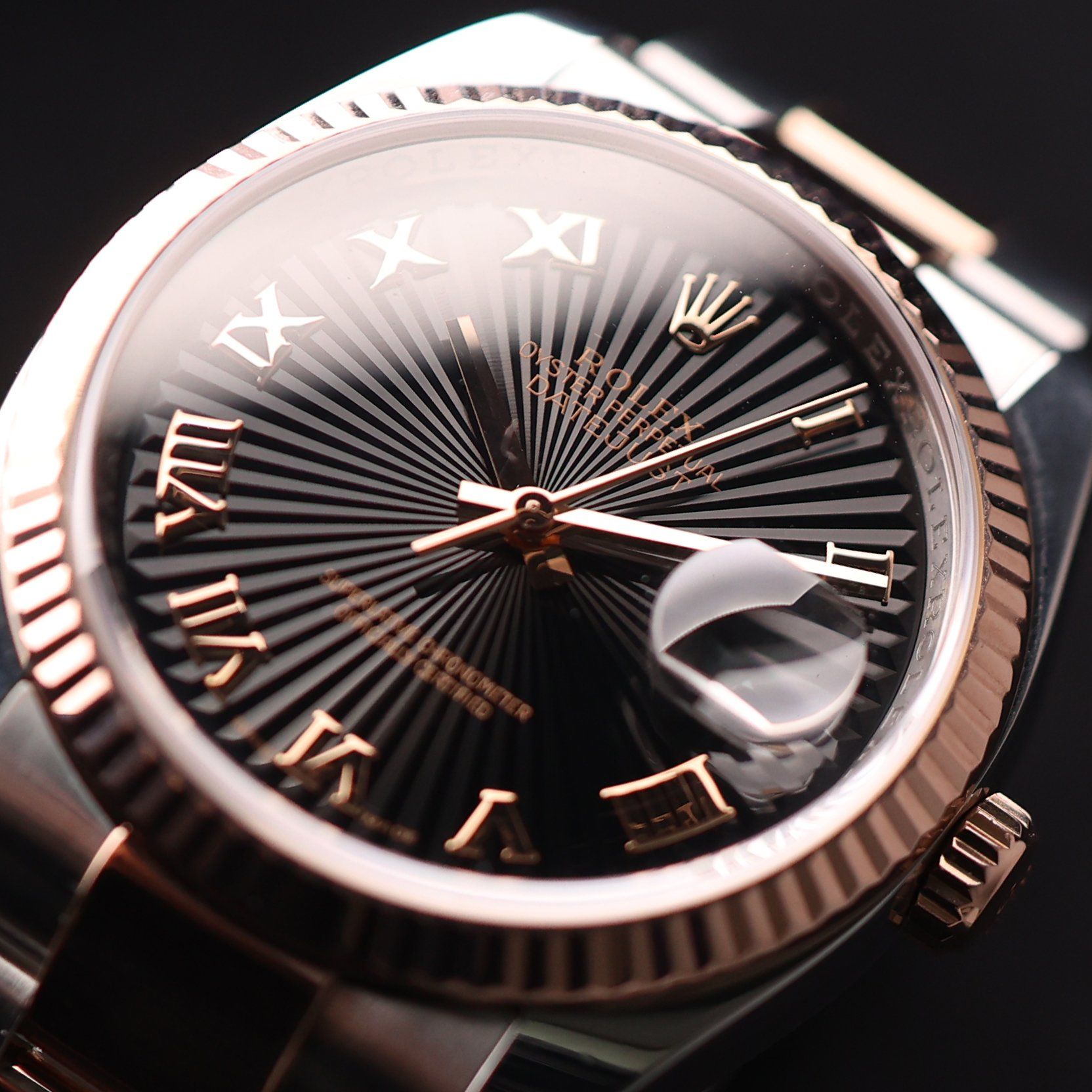 Datejust 36 Steel/Everose Oyster Black Roman Sunburst Dial