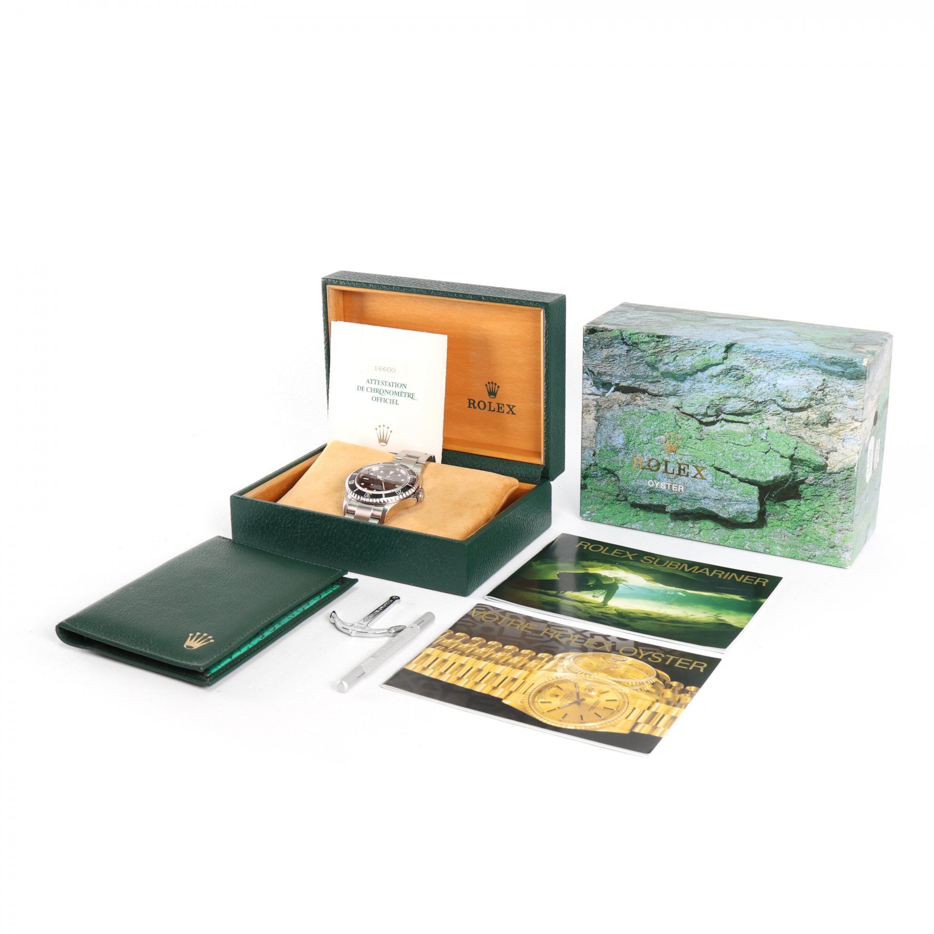 - Minor signs of wear such as hairline marks or small surface scratches. Case, bezel, and bracelet retain sharp edges and overall form. May have been professionally polished without affecting the original contours. Fully functional mechanically.