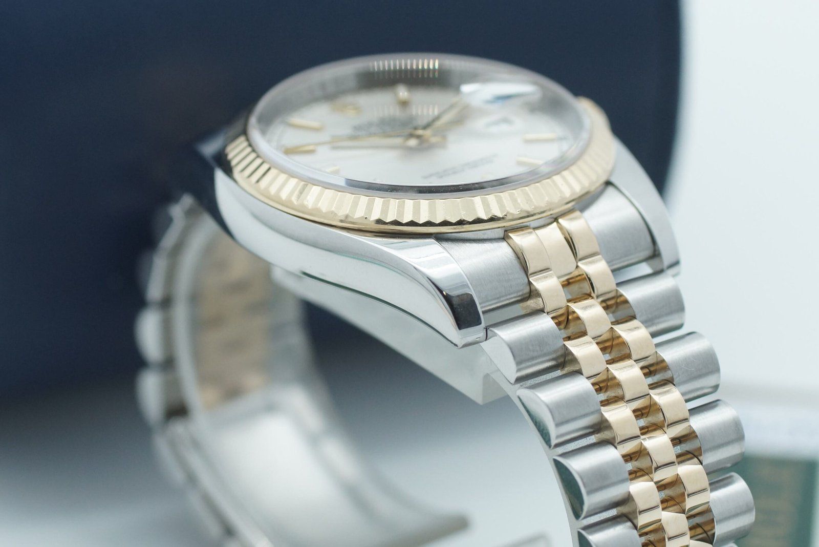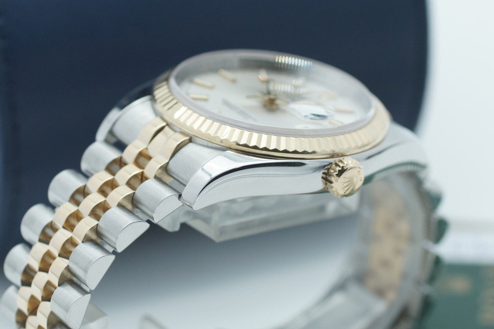 - Minor signs of wear such as hairline marks or small surface scratches. Case, bezel, and bracelet retain sharp edges and overall form. May have been professionally polished without affecting the original contours. Fully functional mechanically.
