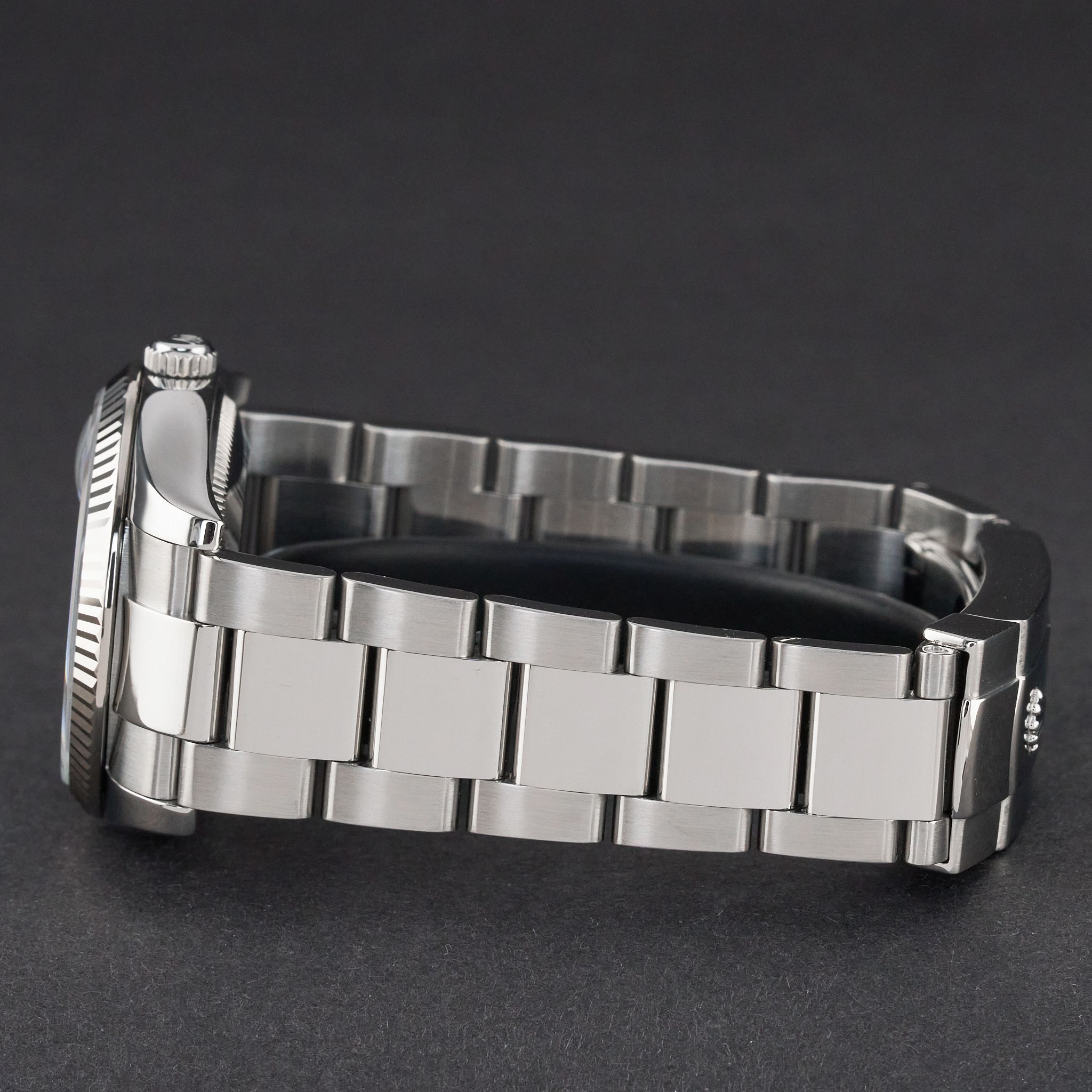 - Minor signs of wear such as hairline marks or small surface scratches. Case, bezel, and bracelet retain sharp edges and overall form. May have been professionally polished without affecting the original contours. Fully functional mechanically.