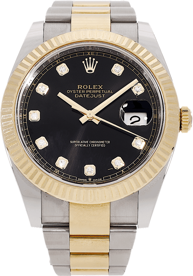 Rolex Datejust 41, Reference: 126333, Gender: Male, Size: 40mm, Dial color: Black, Strap material: Stainless Steel Yellow Gold, Movement: Automatic, Year: 2026, Condition: Previously worn with some signs of usage. The movement is flawless and the case has been cleaned. watch tested to ensure full functionality. An inspection by our certified watchmakers guarantees its authenticity., Documents: Original papers, CHRONEXT Certificate