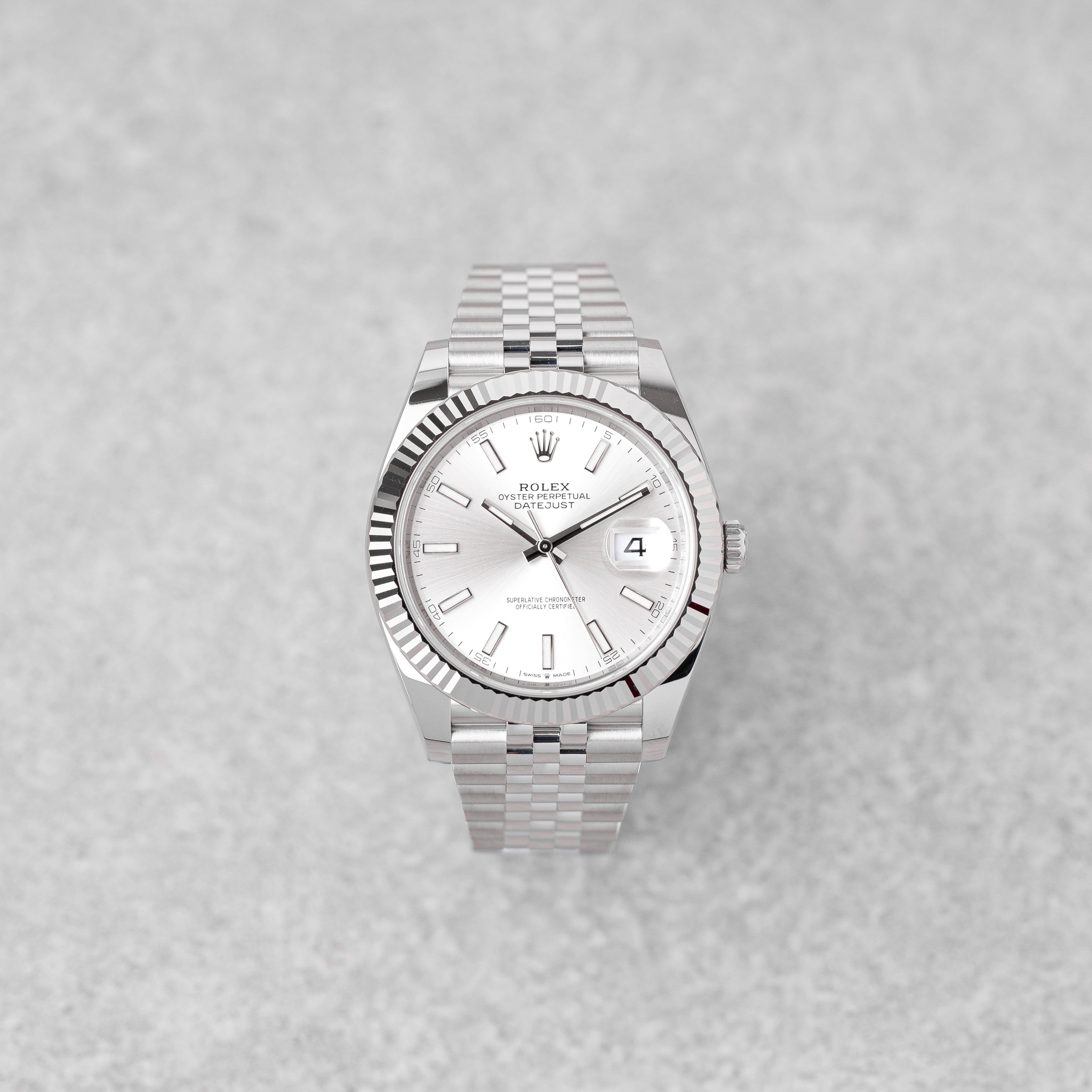 A timeless and elegant configuration, this Rolex Datejust 41 features a classic silver dial, paired with a white gold fluted bezel and the iconic Jubilee bracelet. Delivered as a Full Set from 03/2026, the watch is in new condition and is covered by the Rolex international guarantee until 03/2031. A versatile and sophisticated Rolex, perfect for both everyday wear and formal occasions.