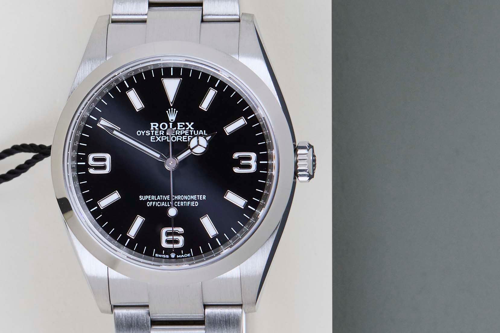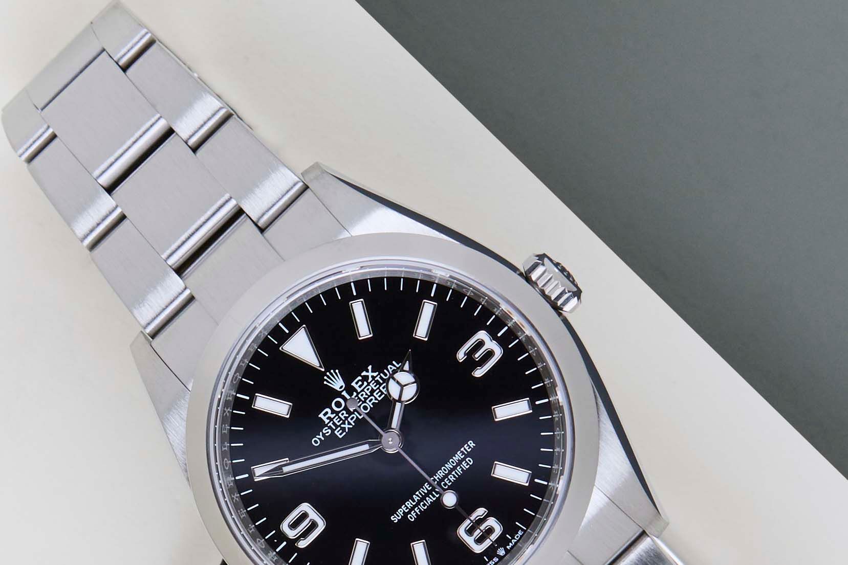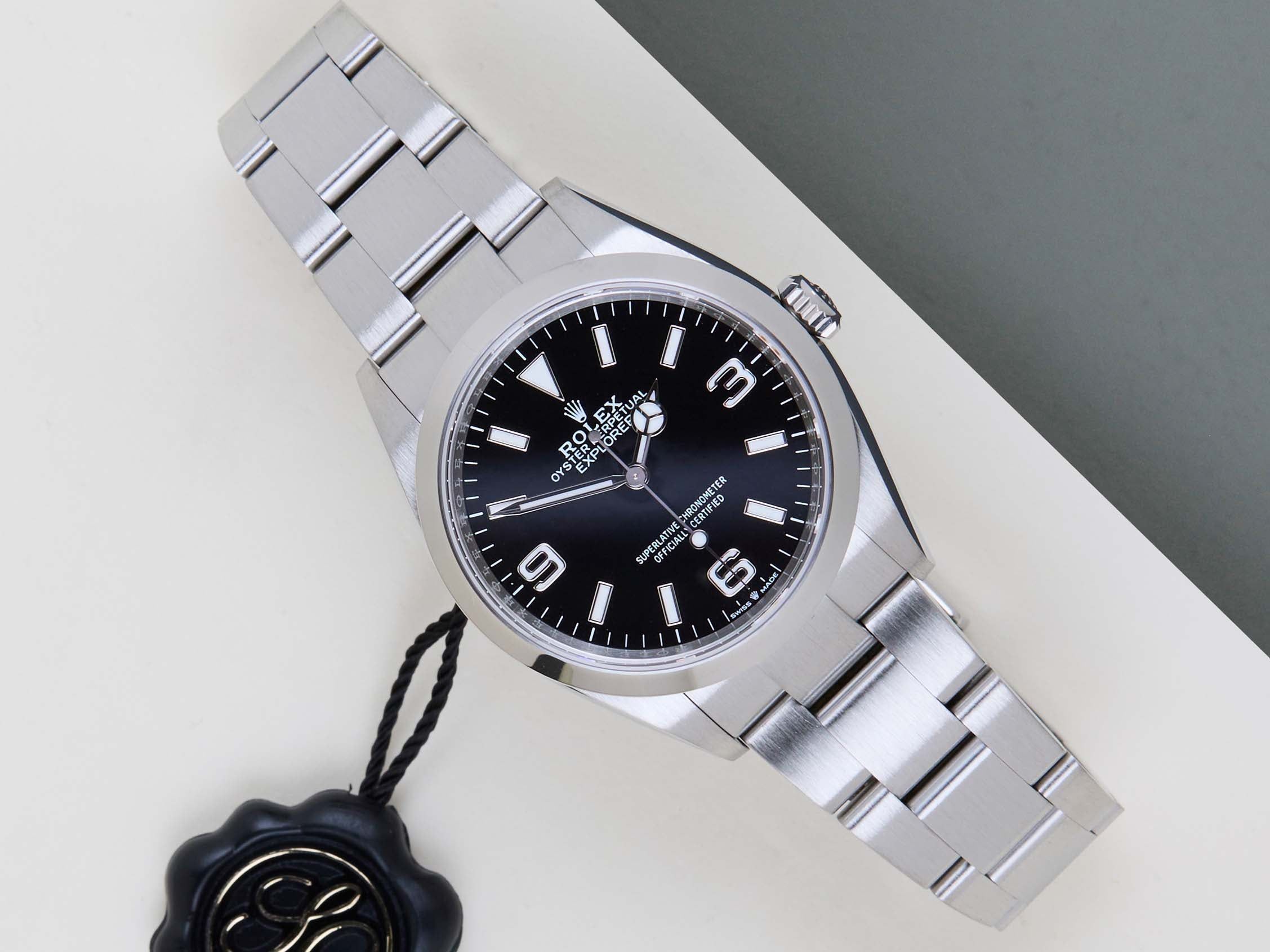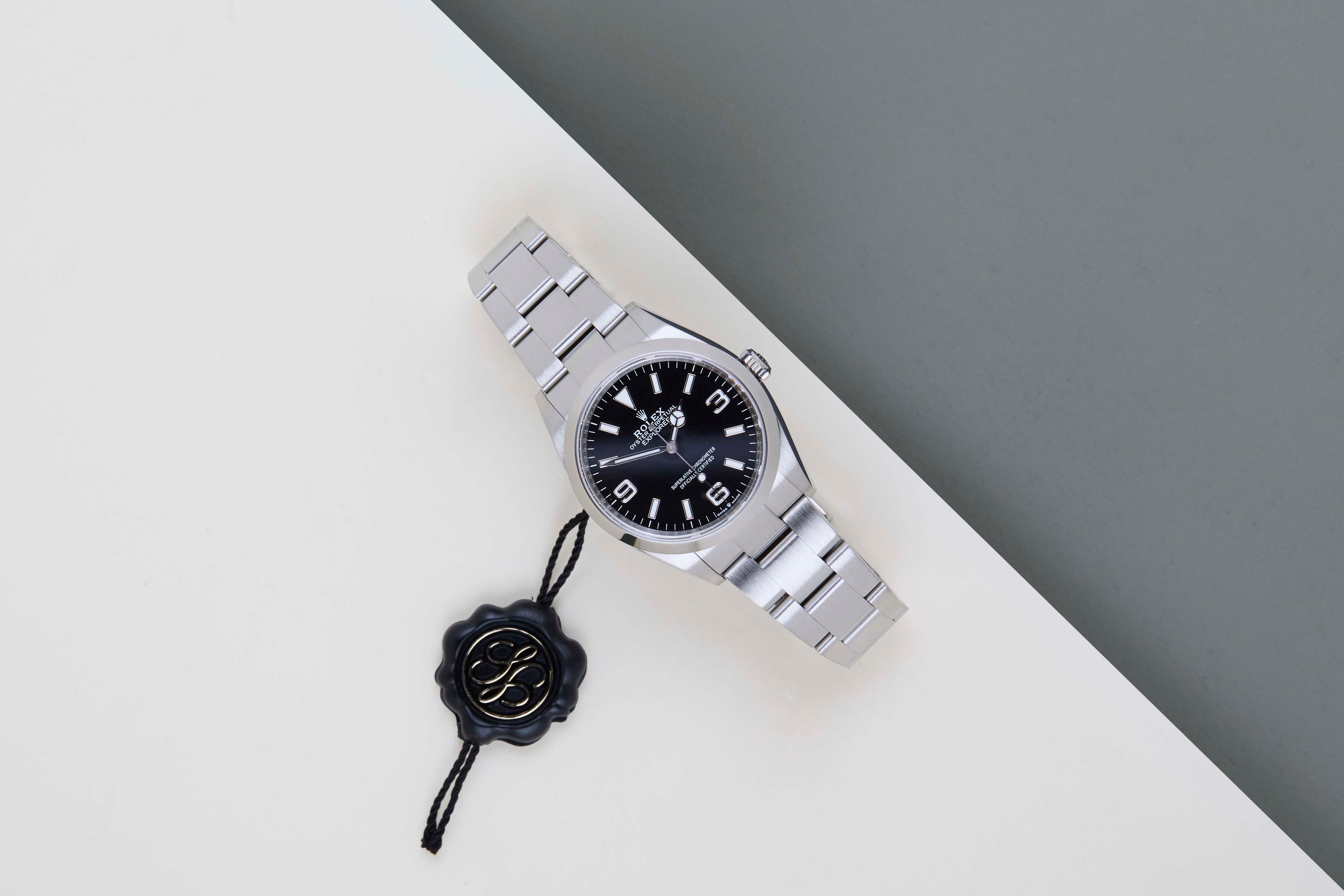 Full Set | International Rolex Warranty Until April 2029 The Rolex Explorer I was first introduced in 1953 and is designed for explorers and adventurers. In 2021, Rolex has gone back to 36mm with the Explorer. The new Explorer I is also fitted with the new calibre 3230, which can be noticed by the coronet at the bottom edge of the dial.This Rolex Explorer I 36 was sold for the first time in April 2024.This Explorer I is equipped with a Black Dial featuring 3, 6 and 9 Arabic hour markers with Chromalight. The Chromalight can be recognized by the lume, which lights up in blue in the dark.This Rolex Explorer I is in Mint condition and comes with the original Rolex Warranty Card and Original Box. Furthermore, the watch comes with International Rolex Warranty until April 2029.