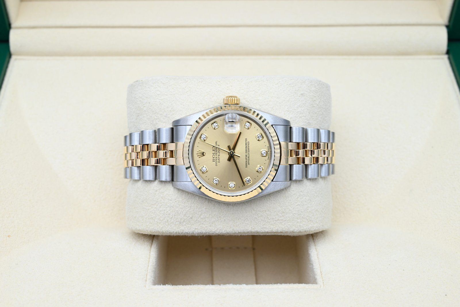 Rolex Datejust 78273 from 2001 with the champagne diamond dial in excellent condition, including the original box and papers.