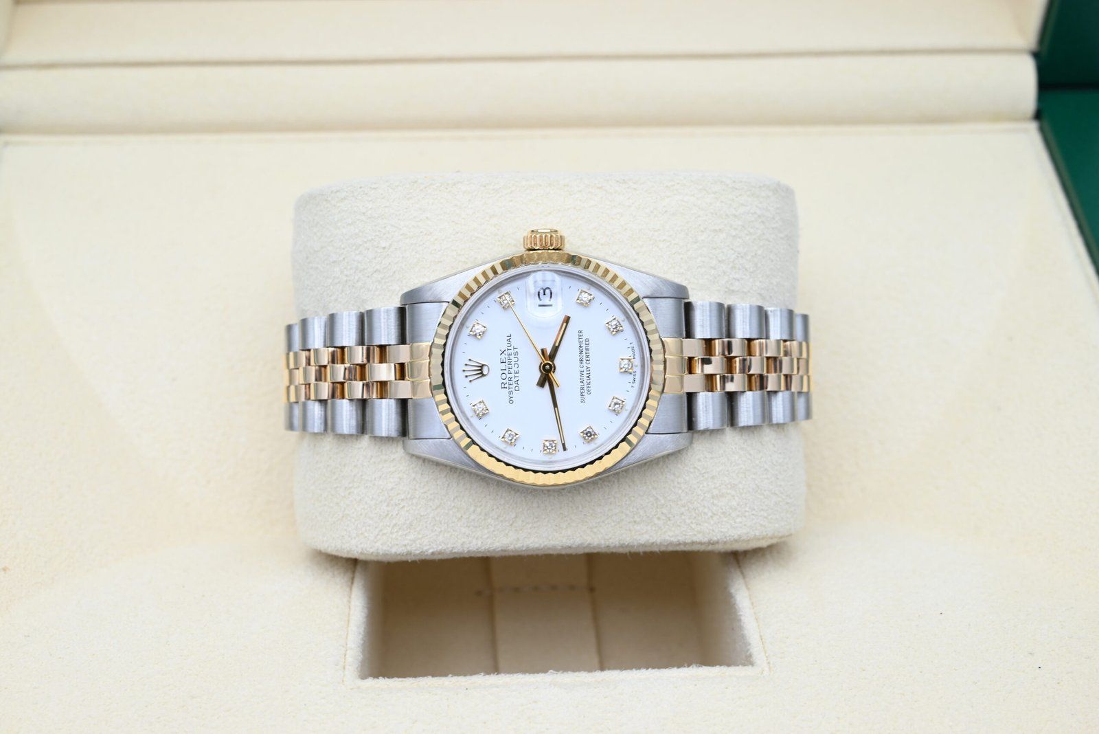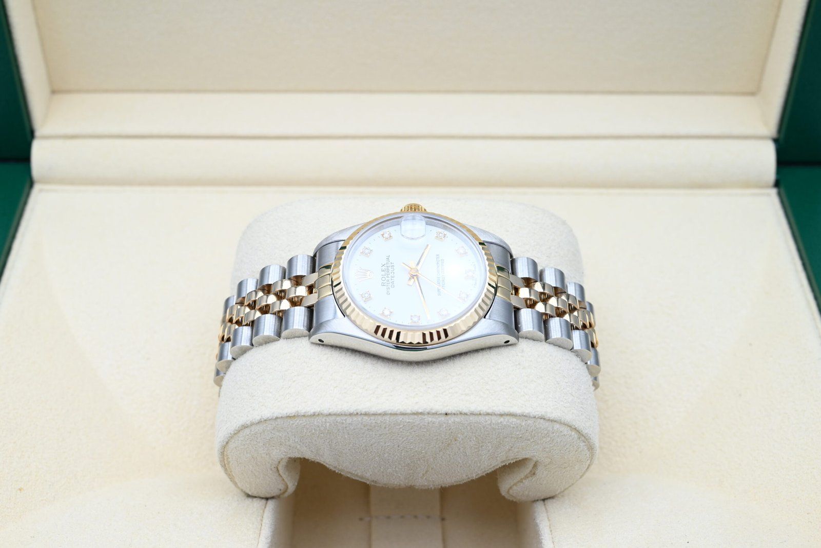Rolex Datejust 68273 from 1993 with the white diamond dial in excellent condition, including the original box and papers.