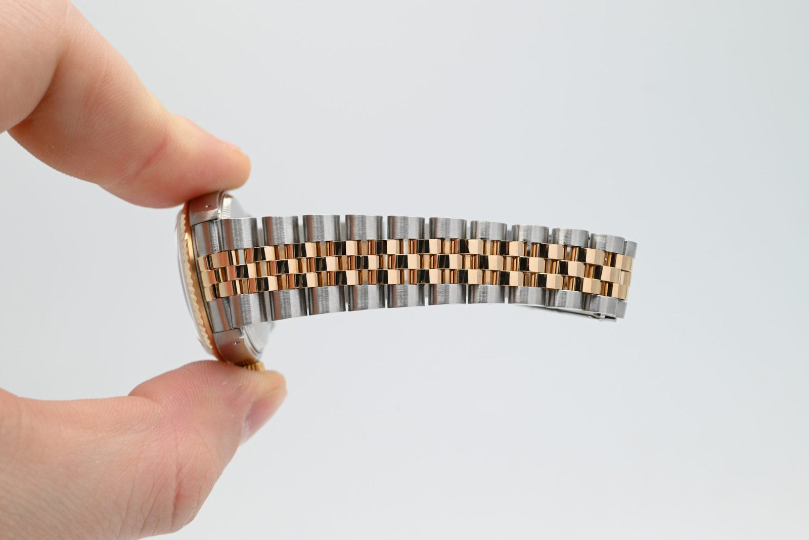- Minor signs of wear such as hairline marks or small surface scratches. Case, bezel, and bracelet retain sharp edges and overall form. May have been professionally polished without affecting the original contours. Fully functional mechanically.