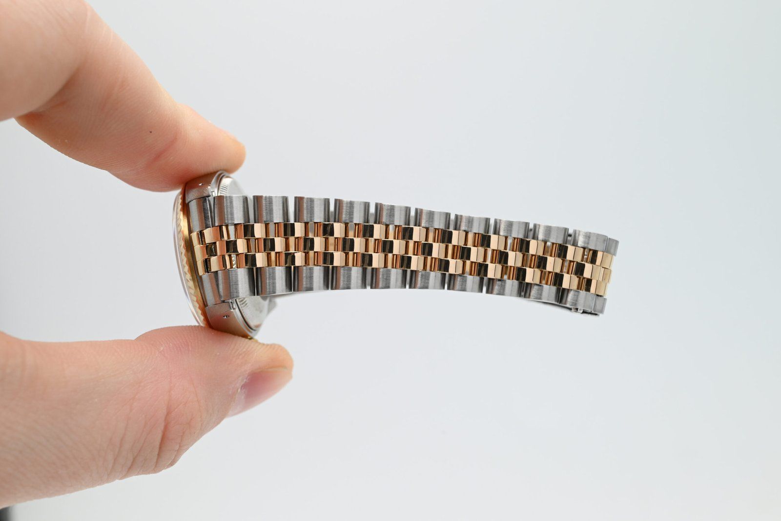 - Minor signs of wear such as hairline marks or small surface scratches. Case, bezel, and bracelet retain sharp edges and overall form. May have been professionally polished without affecting the original contours. Fully functional mechanically.