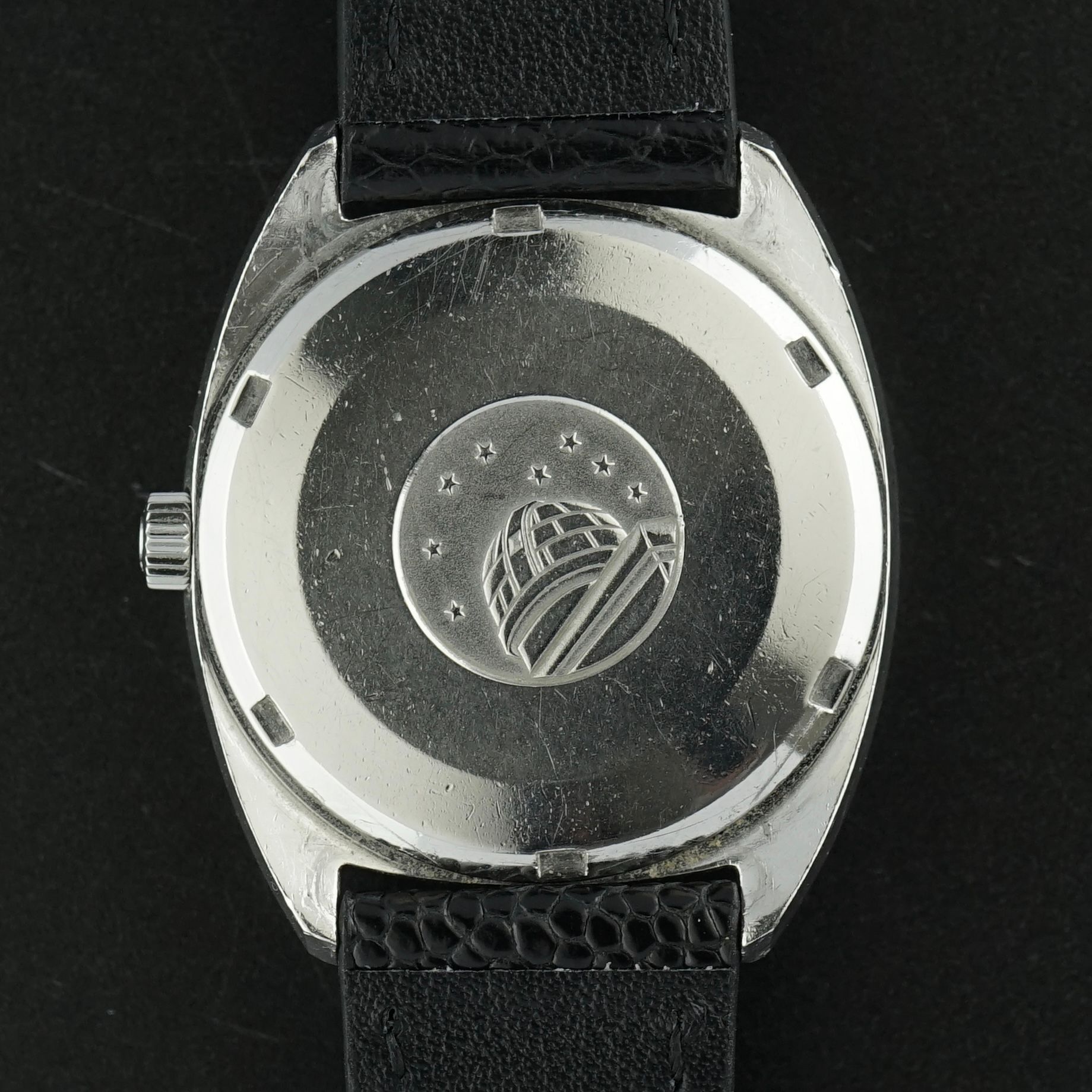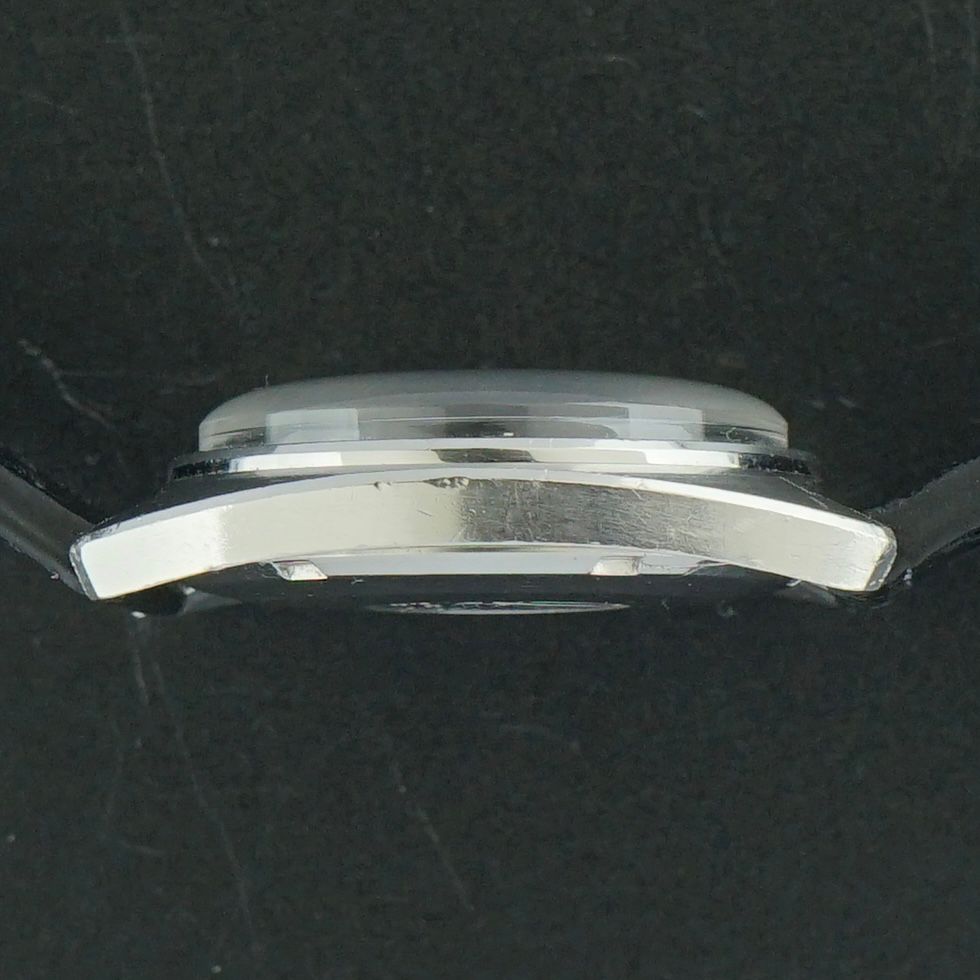 A Vintage Omega Constellation chronometer C-shape from 1968, featuring a beautiful silver linen dial with a refined texture and a day date function at 3 o’clock, with the weekdays displayed in English. The 35mm stainless steel case showcases the characteristic C shape design, giving the watch a strong and timeless presence on the wrist. Powered by the automatic caliber 751 movement, fully overhauled in April 2026 and running and functioning excellently. The watch is paired with a brand new black leather strap with crocodile motif. What makes this example especially desirable is its uncommon completeness, coming with the original box and papers, including details such as serial number, reference number, original purchaser, dealer and dated August 16th 1969. Overall condition is good with light signs of wear consistent with age, but the originality combined with full set presentation makes this a highly attractive and valuable collector’s piece.